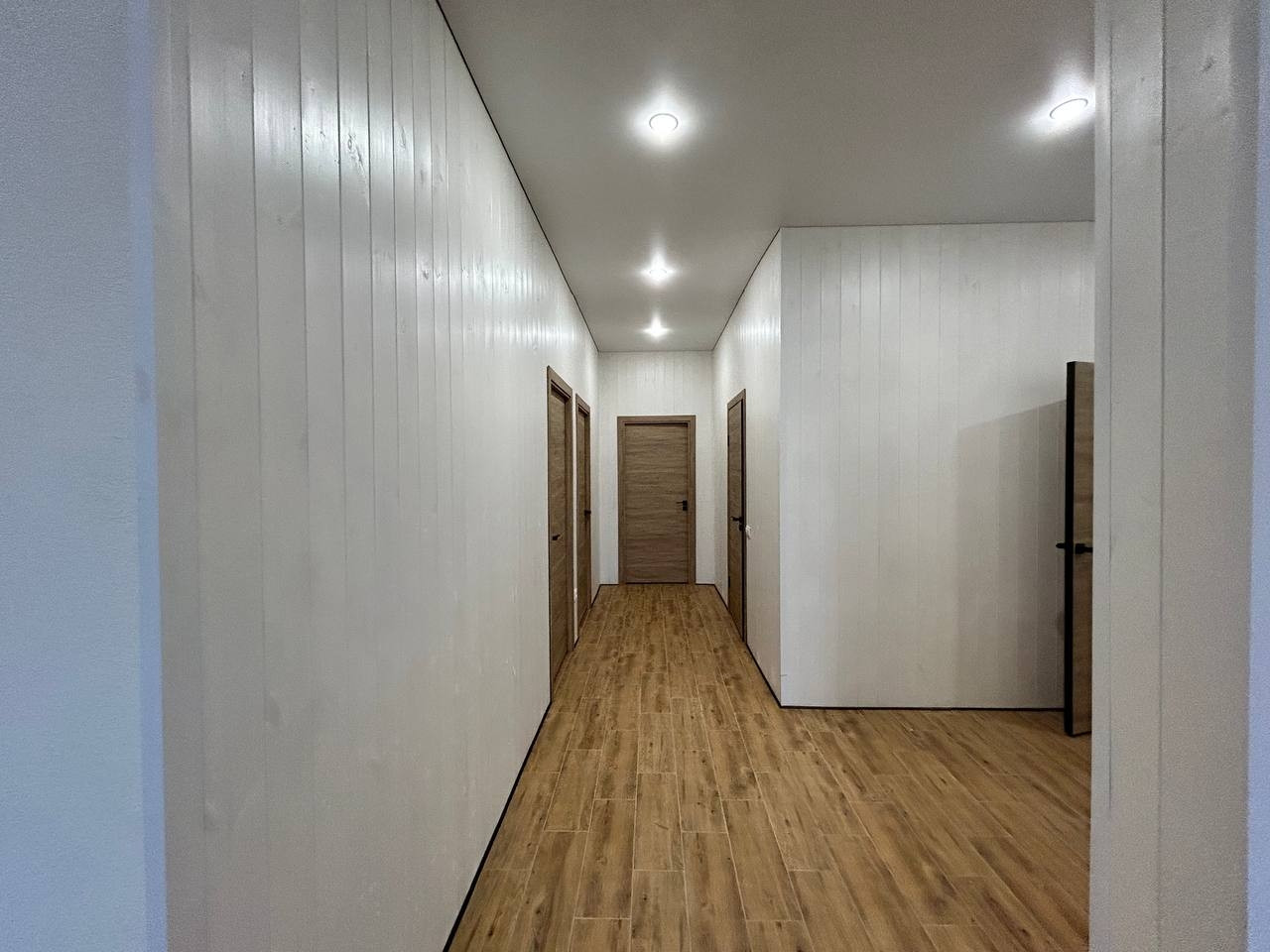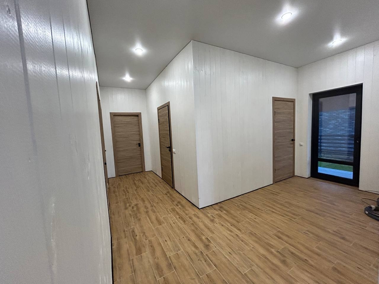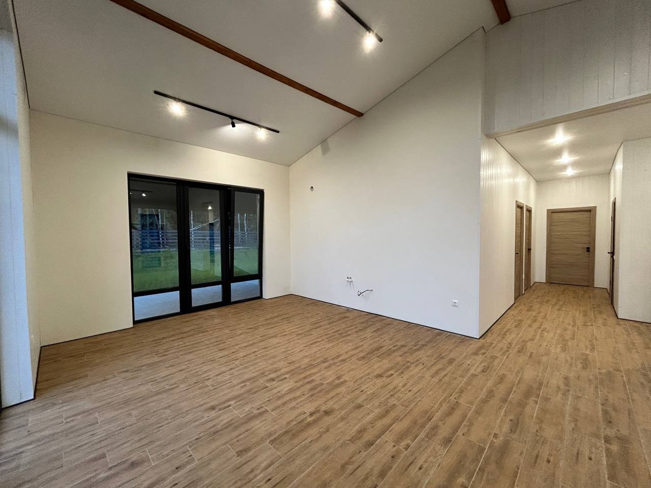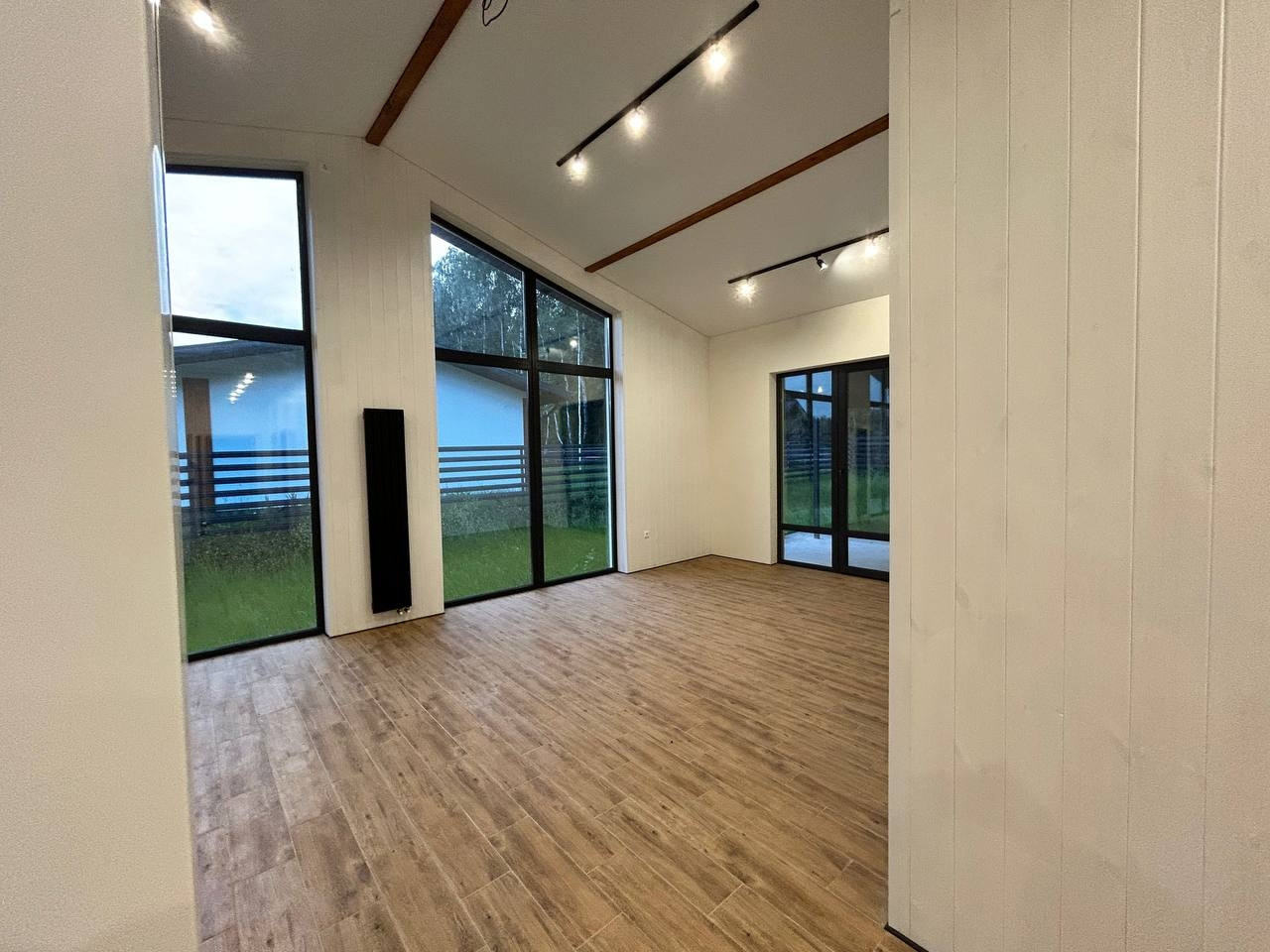 Дом имеет отличную планировку: светлая кухня-гостиная с высоким потолком и выходом на террасу, 2 комнаты и мастер спальня (с выходом на террасу, гардеробной и санузлом), прихожая, бойлерная, коридор, санузел.