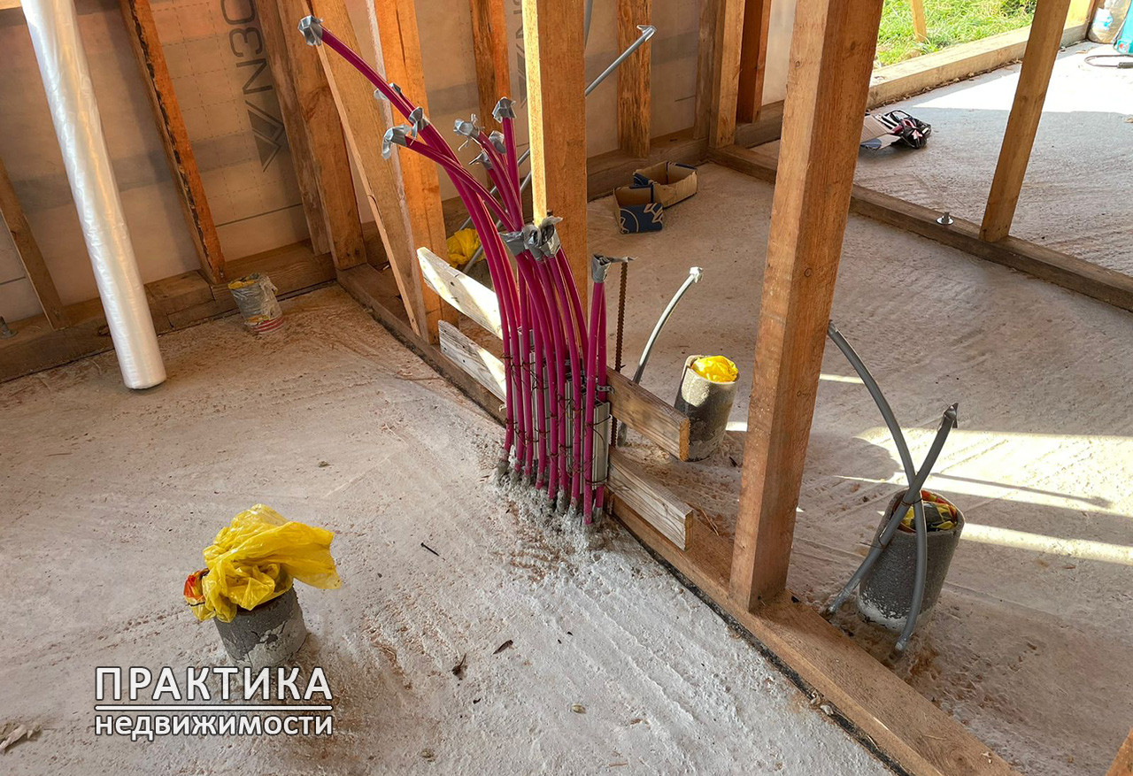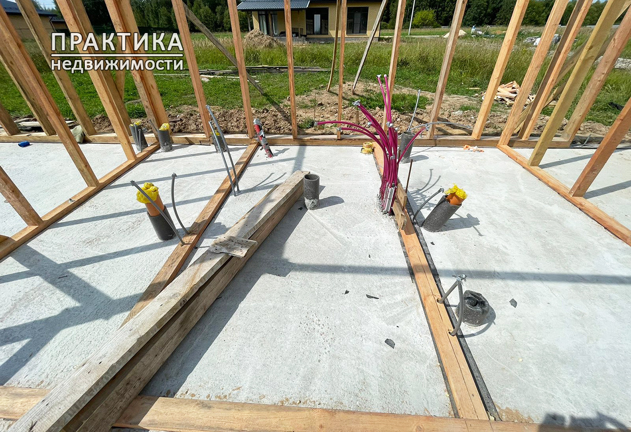 По конструктиву дома: Фундамент свайно-ростверковый, монолитная плита, армированный. Облицовка цоколя декоративный камень. Стены каркасные, утепленные по зимнему. Вокруг дома выполнена отмостка. Полы монолитное армированное перекрытие с теплым водяным полом (трубы REHAU), стяжка под напольное покрытие. Окна пластиковые, двухкамерные, энергосберегающая комплектация ТЕРМОС, профиль REHAU. Крыша и стены - металлопрофиль. Водосточная система. Снегозадержатели. Потолок утеплен.
