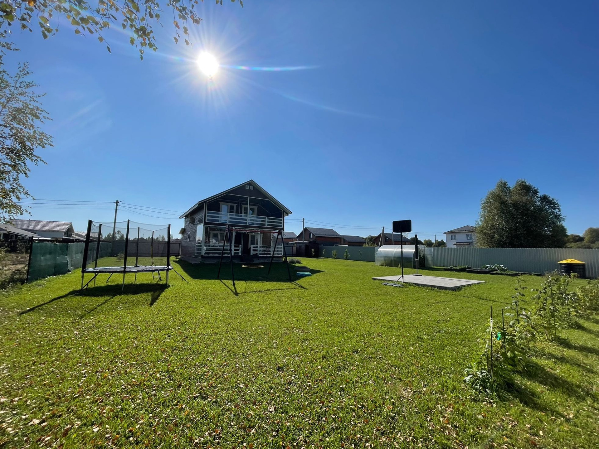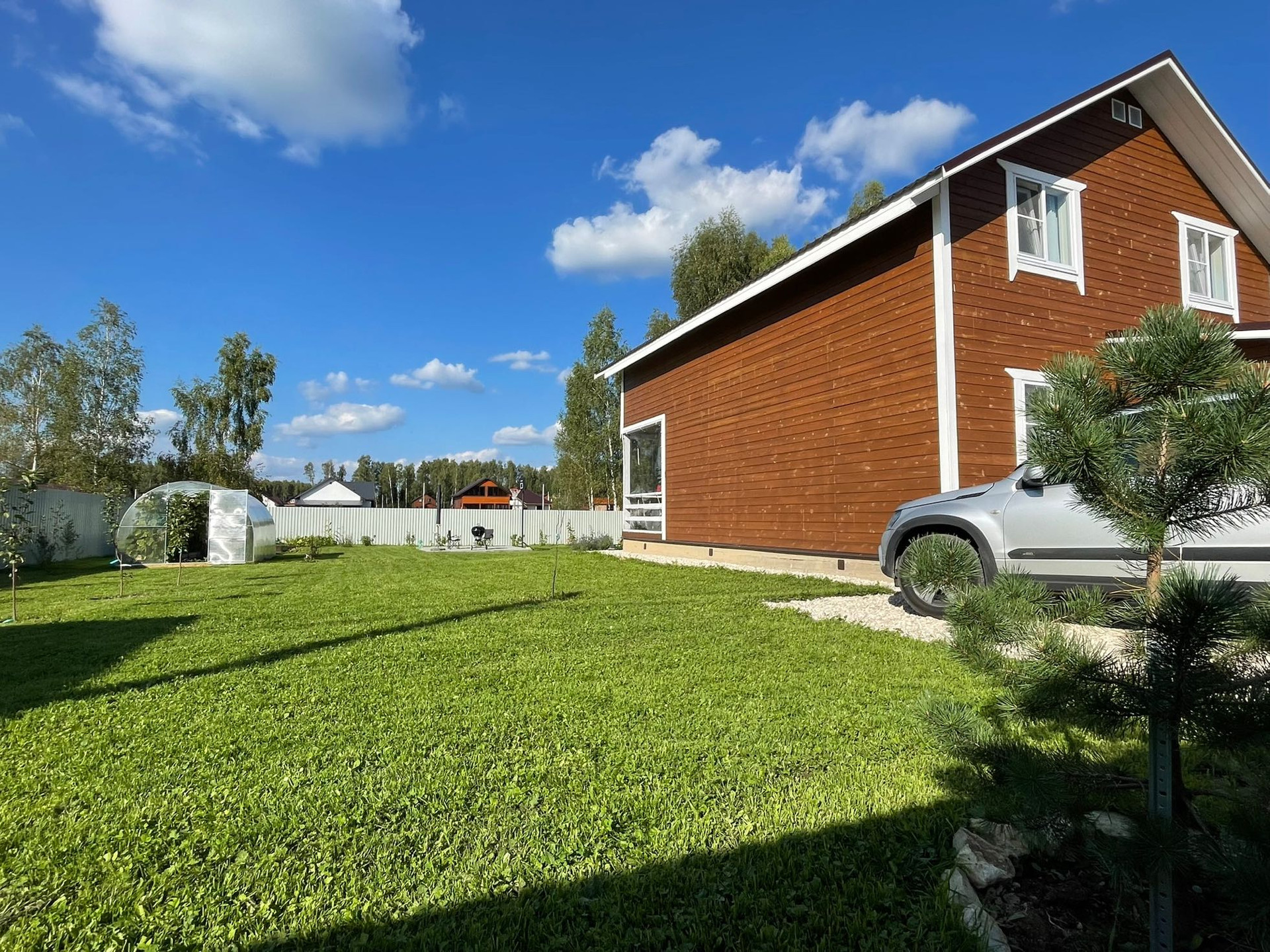 1) Участок выровняли, землю завезли, газон засеяли, деревья/кустарники посадили.
