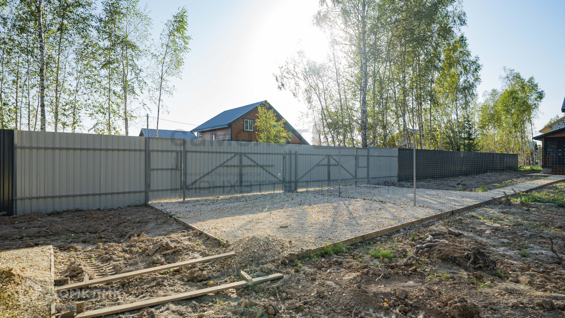 Огорожен профлистом + сеткой рабицей;