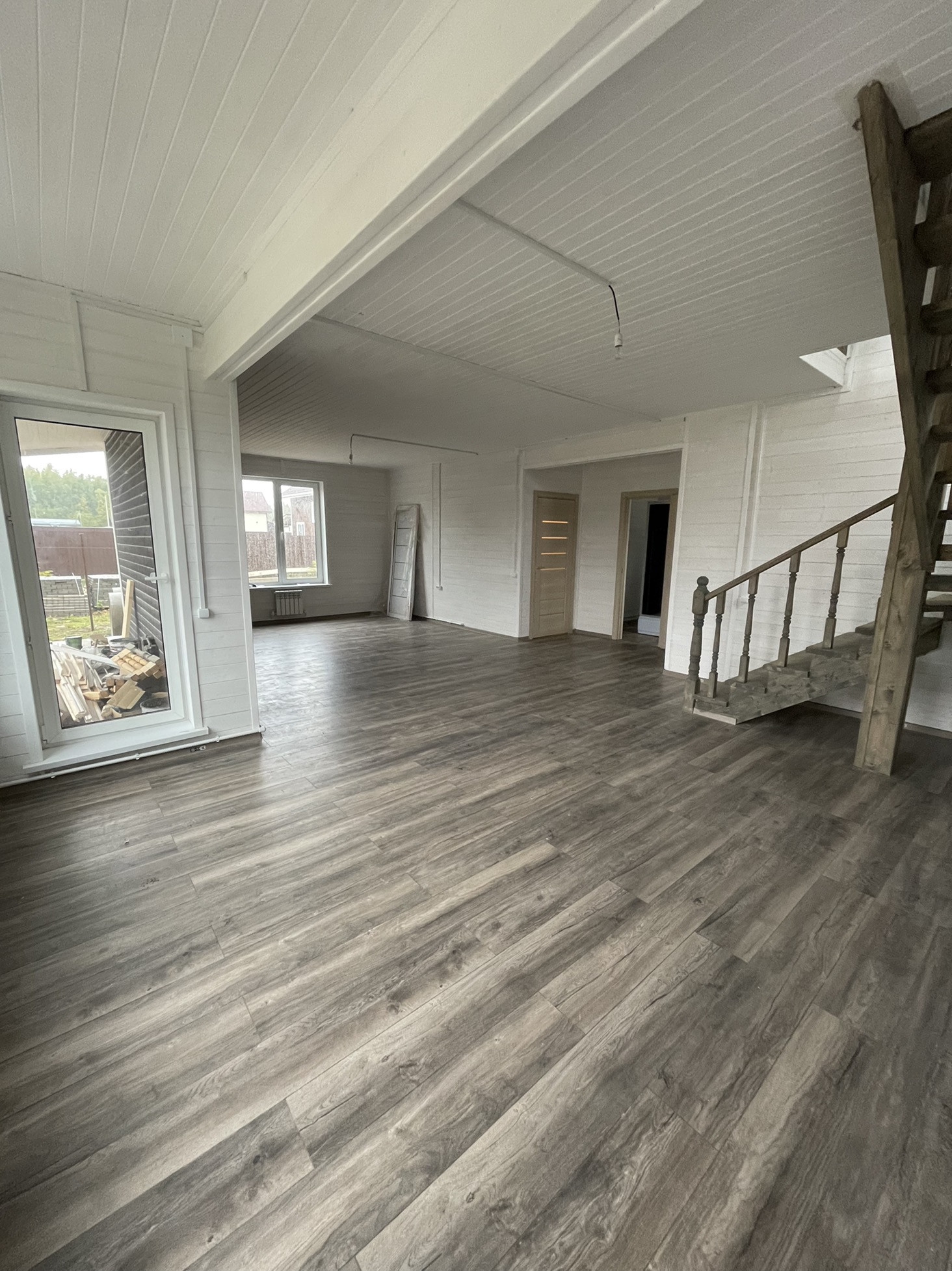 Oбщая плoщaдь - 170кв.м.; мaтepиaл дома брус сечением - 150х100; внешняя отделка дома - ОСБ панели + фасадная плитка «Хауберк»; внутренняя отделка дома - стены имитация бруса; утепление дома - стены 100 мм; пол, потолки, крыша - 150 мм.; установлена плитка с тёплым полом в санузле на 1м этаже; окна - двухкамерные стеклопакеты; крыша - металлочерепица; фундамент - ленточный армированный на песчаной подушке; полы - ламинат.