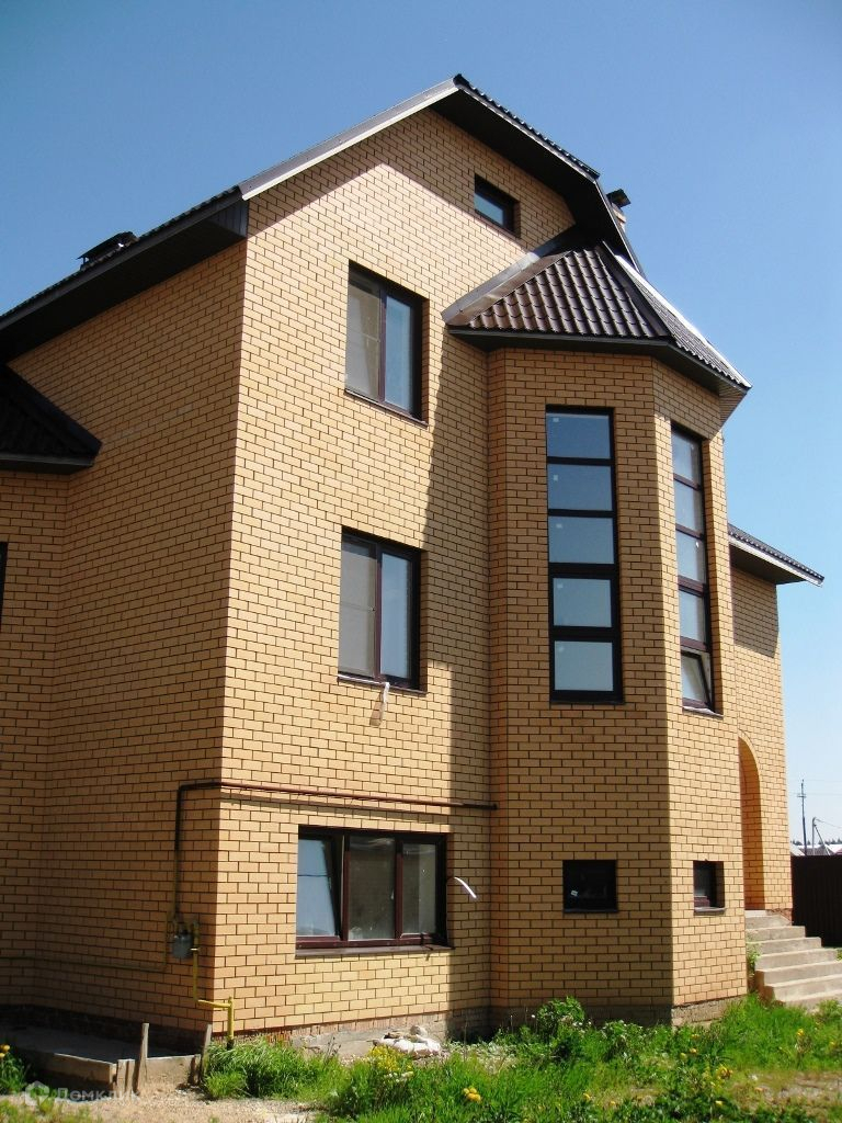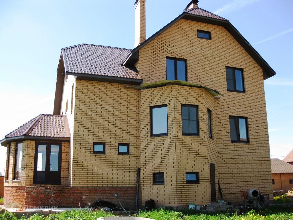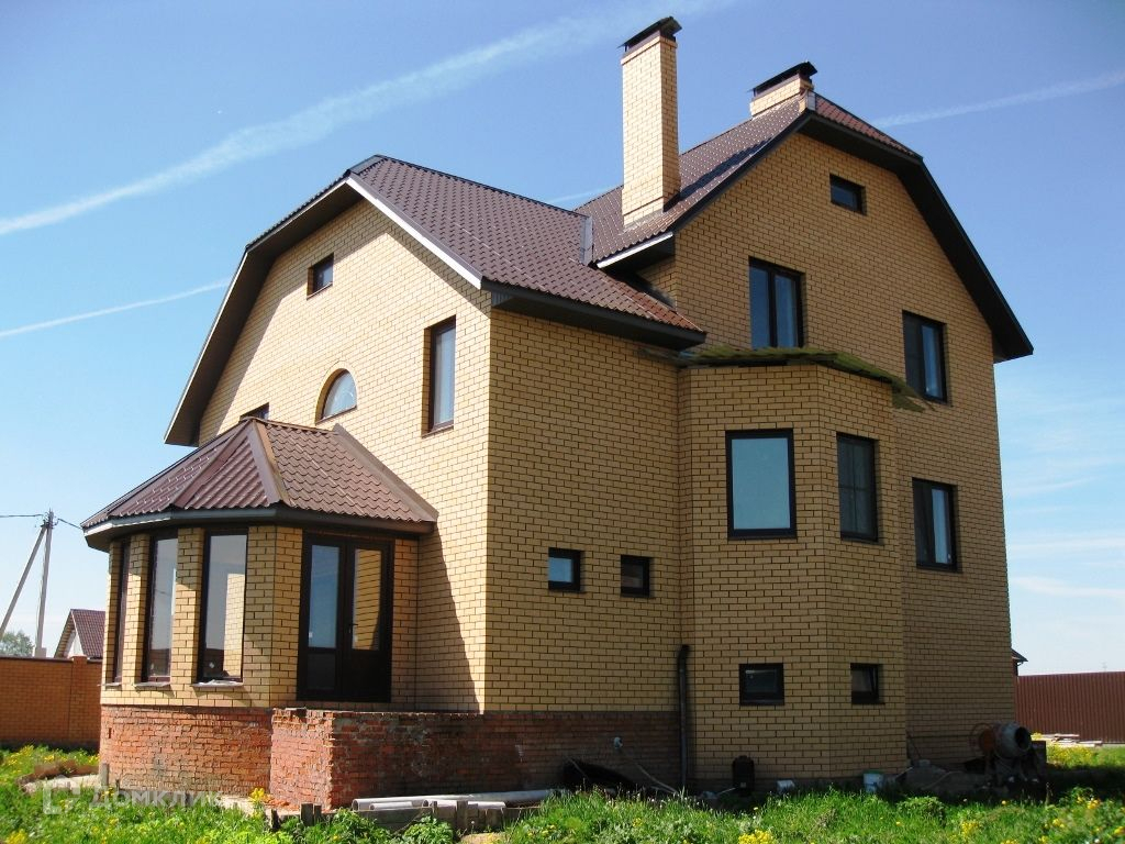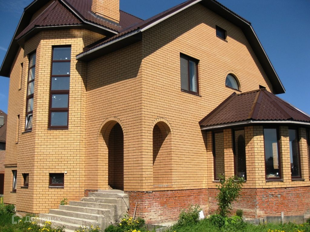 Этот просторный дом построен на участке 13 соток, материал стен - блоки , с облицовкой фасада кирпичем. Для авто предусмотрен гараж, на участке выстроена коробка – баня.