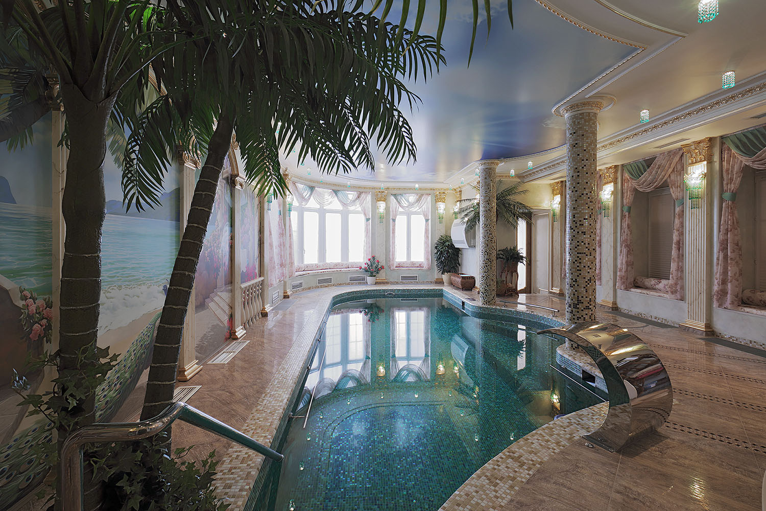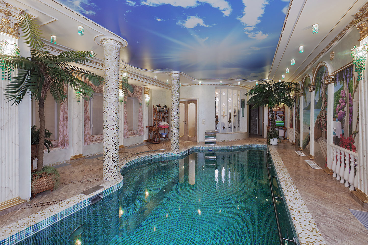 а так же гостиная, каминный зал, бильярдная, сауна, бассейн, террасы, гараж...