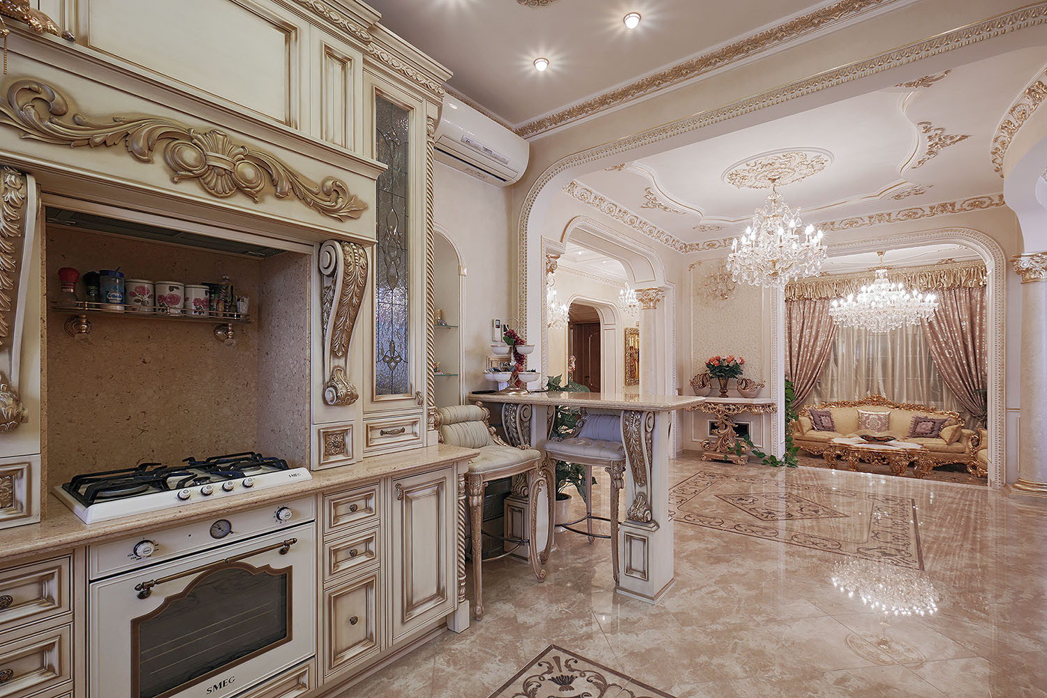 выдержан  в стиле легкого "Барокко" и оснащен: