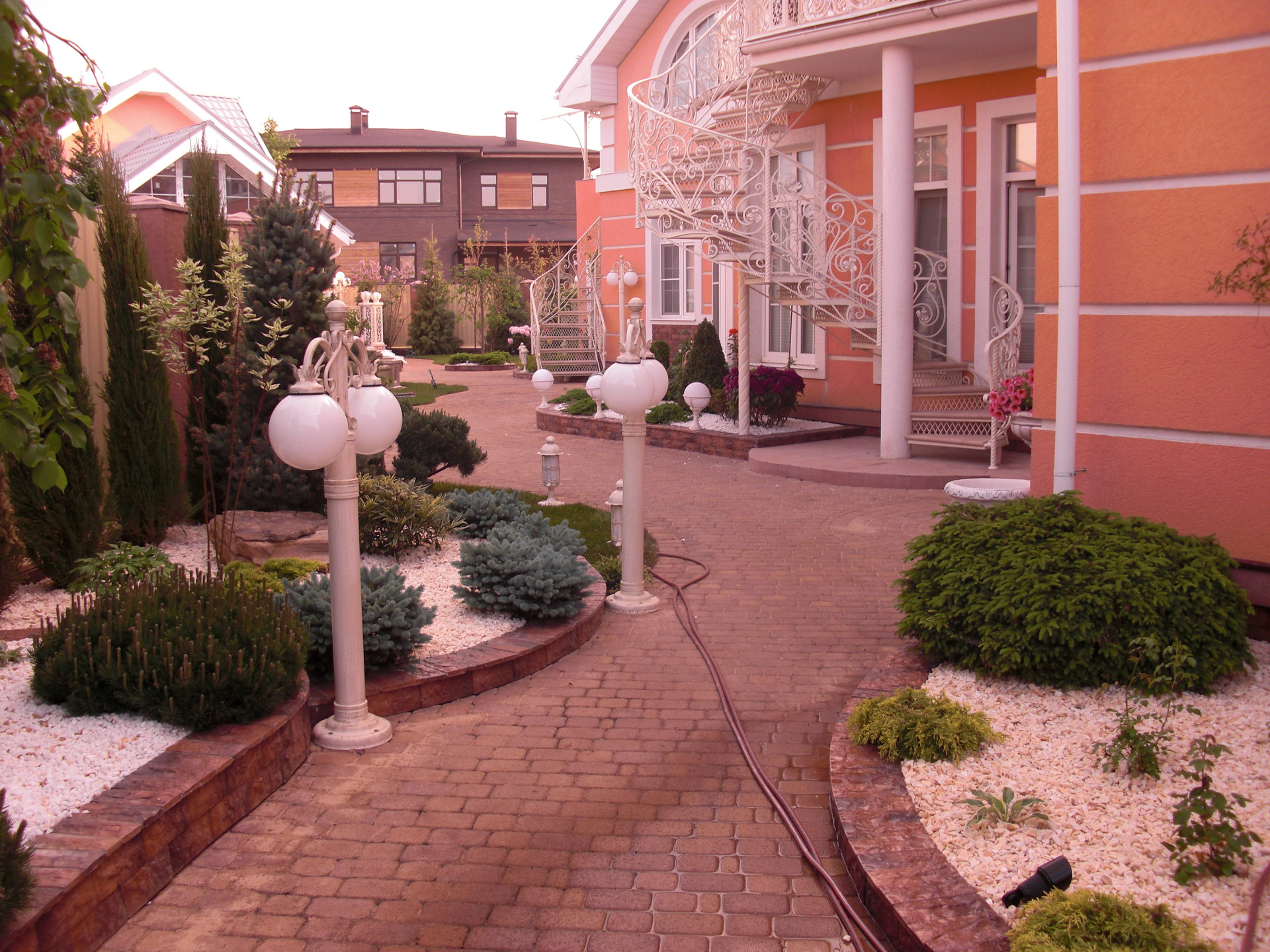 имеет ландшафтный дизайн с многочисленными цветущими, хвойными и плодовыми растениями. На участке есть крытая парковка на 2 авто, теплица, зоны отдыха, зона барбекю, фонтан.