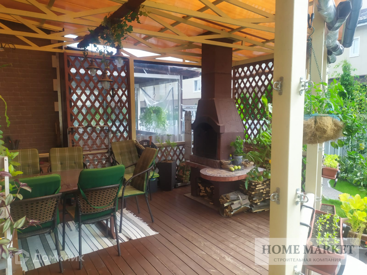 В доме расположено на 1 этаже: кухня с выходом на большую террасу, просторная гостиная, санузел, вместительная кладовка; на 2 этаже: три изолированные спальни, санузел с ванной, застеклённый балкон под зимний сад. С выходом на террасу: крытый навес с мягким окнами позволяющий укрыться от непогоды. Действующий камин, позволяющий наслаждаться тихой спокойной жизнью под красоту.