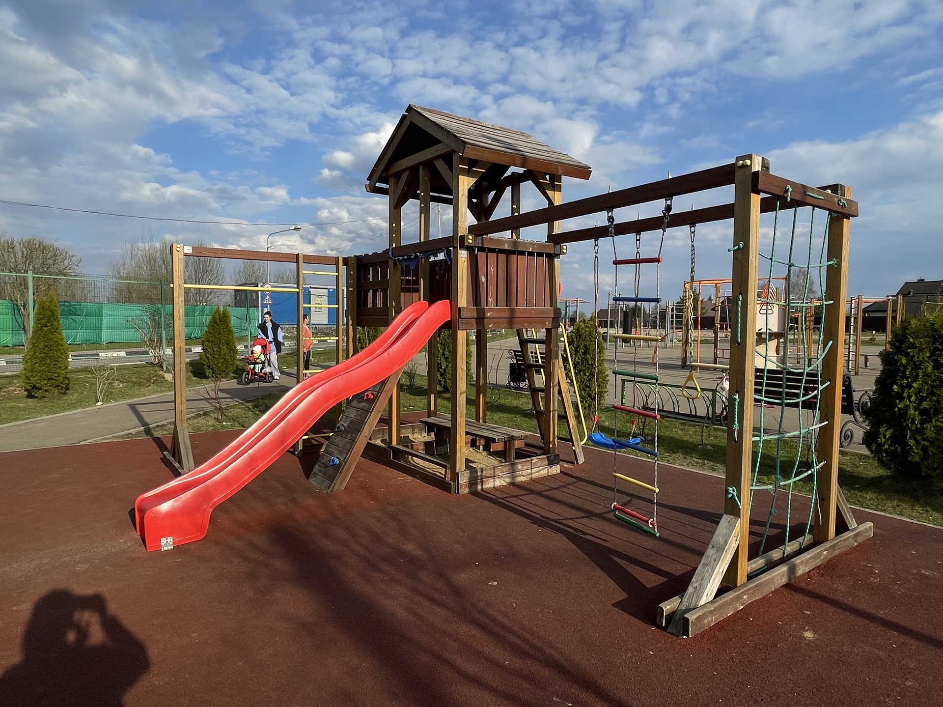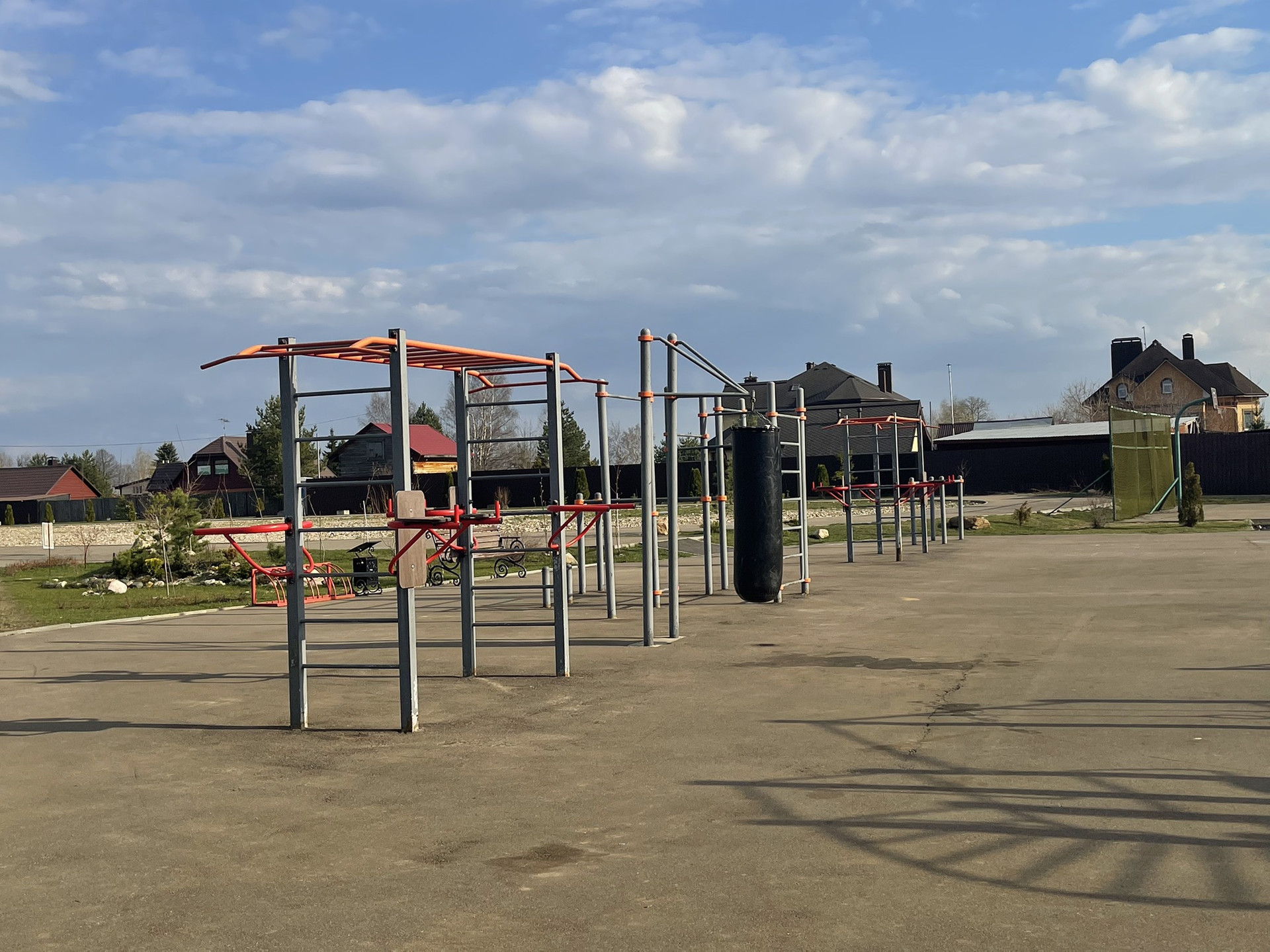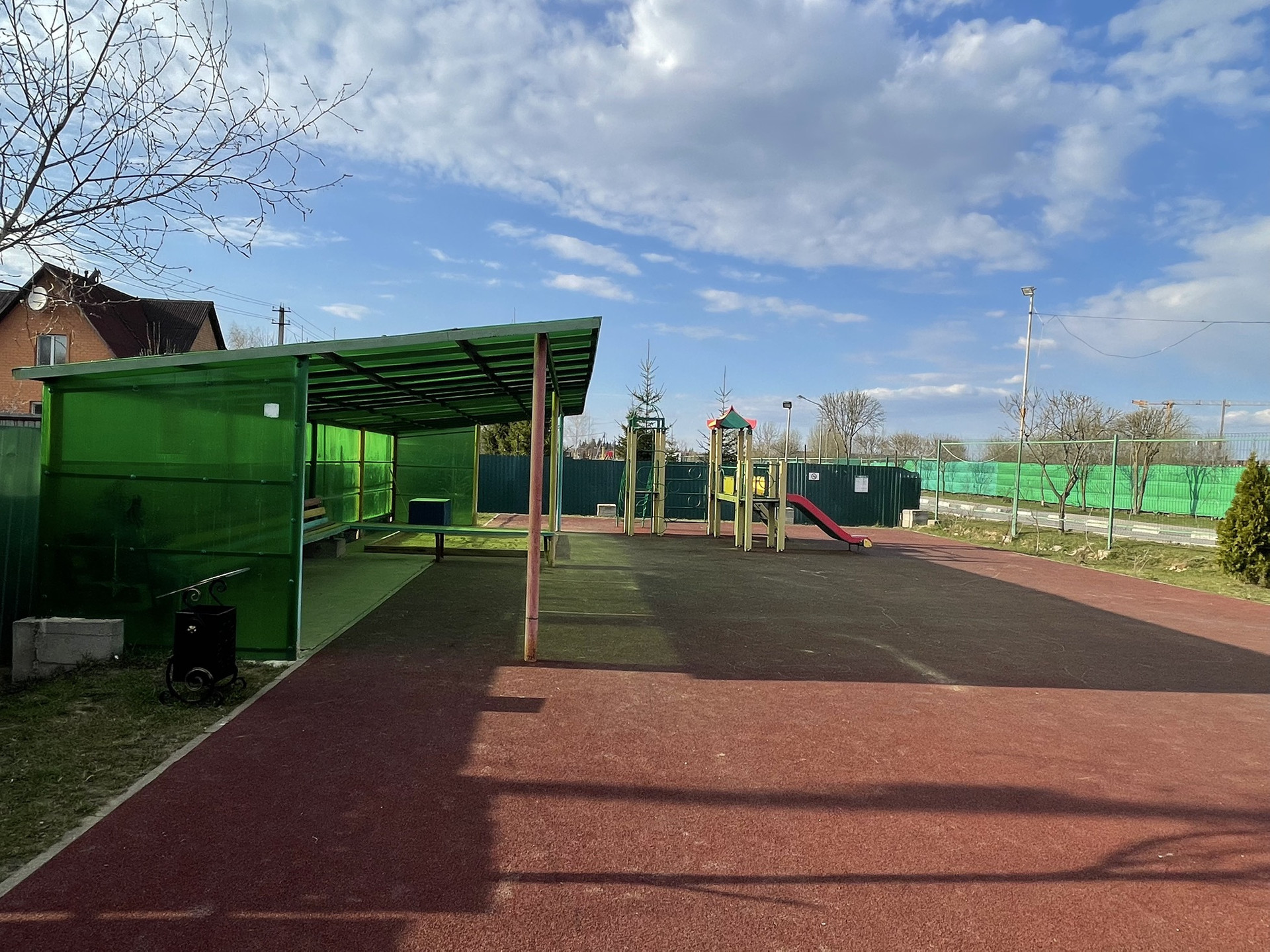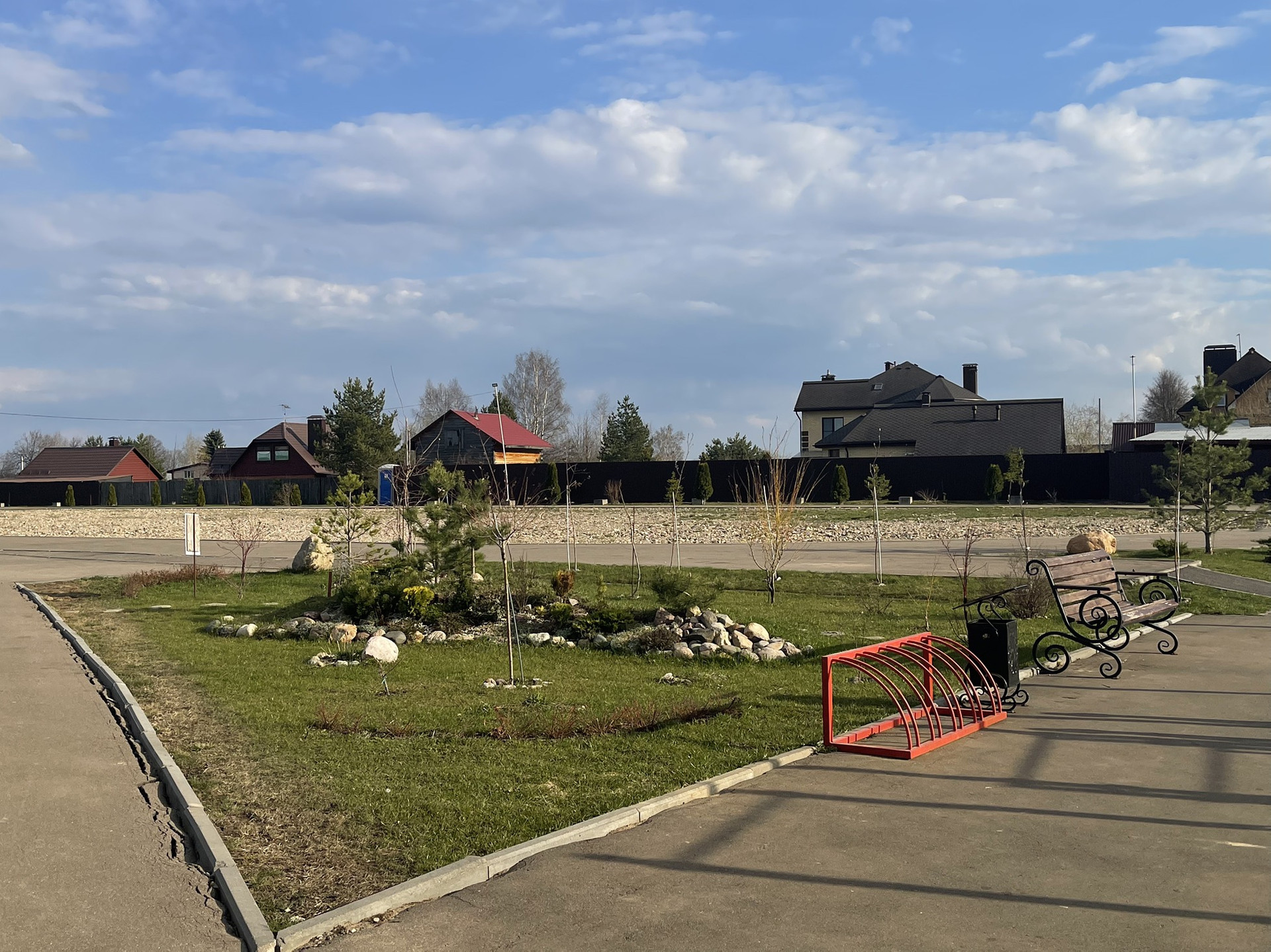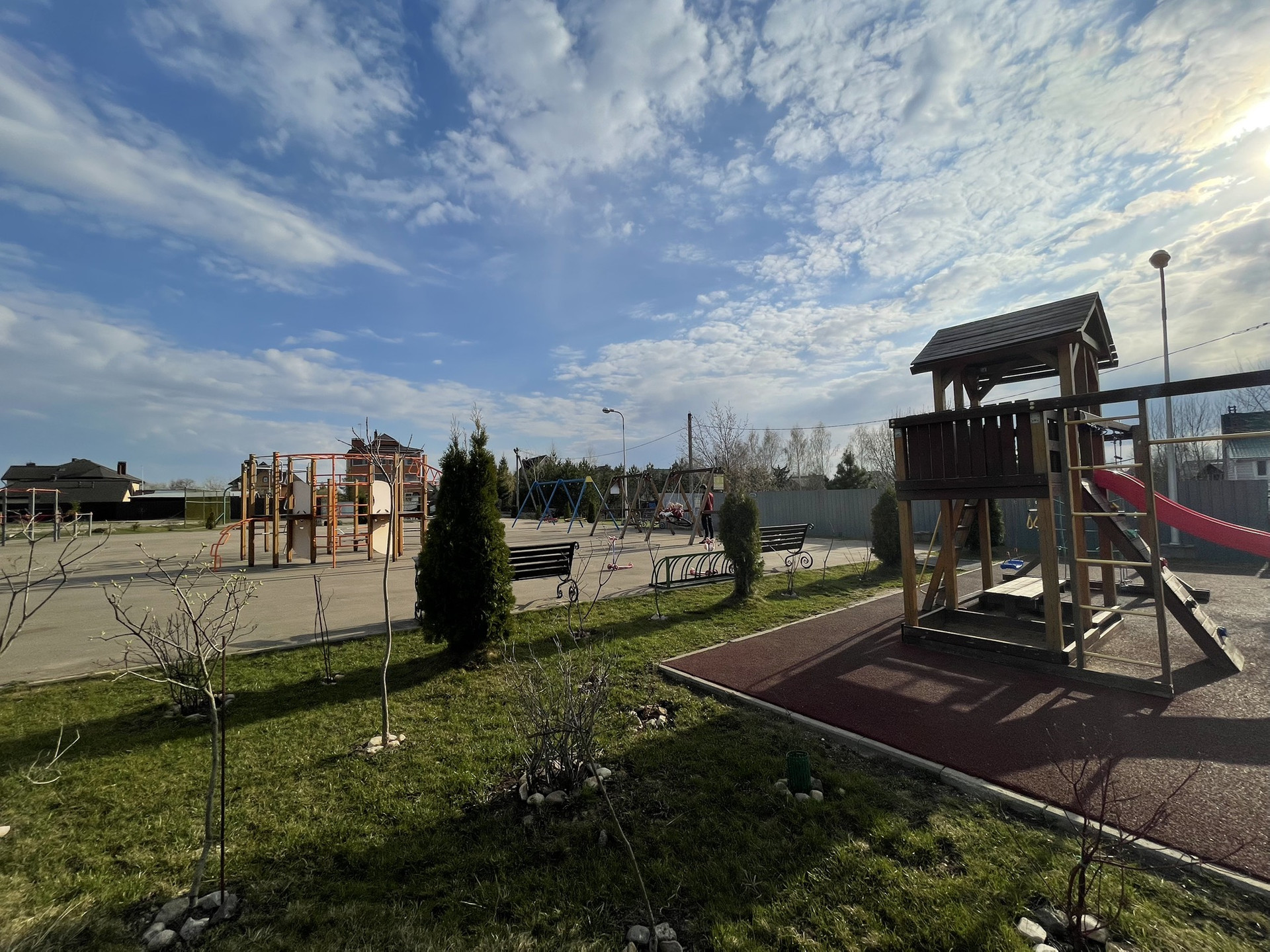 Стадион с ночным освещением, несколько детских площадок на разный возраст, спортивная площадка для волейбола/футбола/настольного тенниса, беговая дорожка, отдельное место для выгула собак, небольшой магазин в поселке.