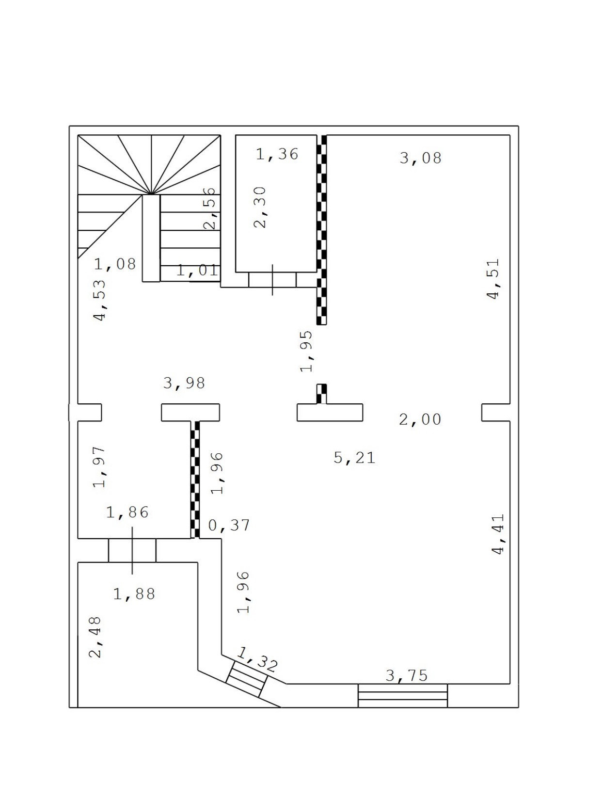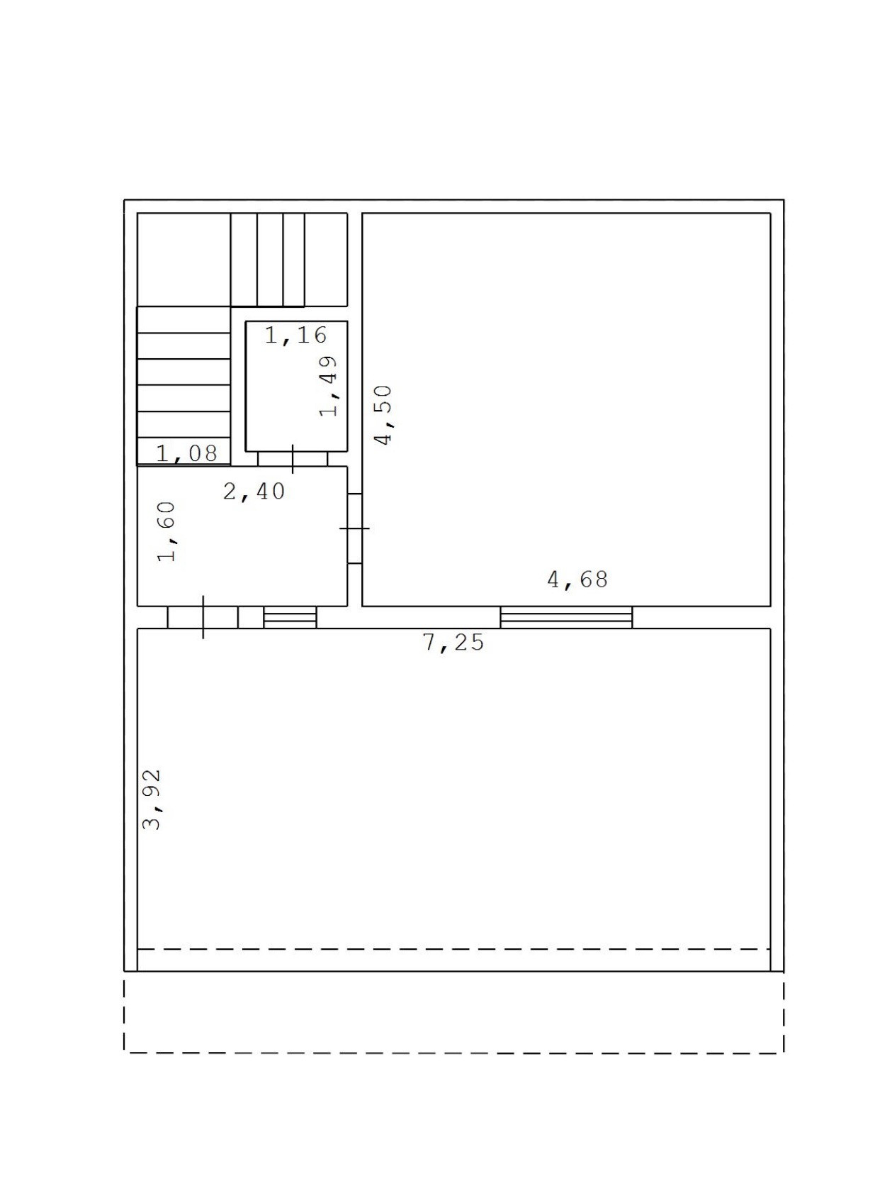 Первый этаж - прихожая, коридор, место для хранения под лестницей.