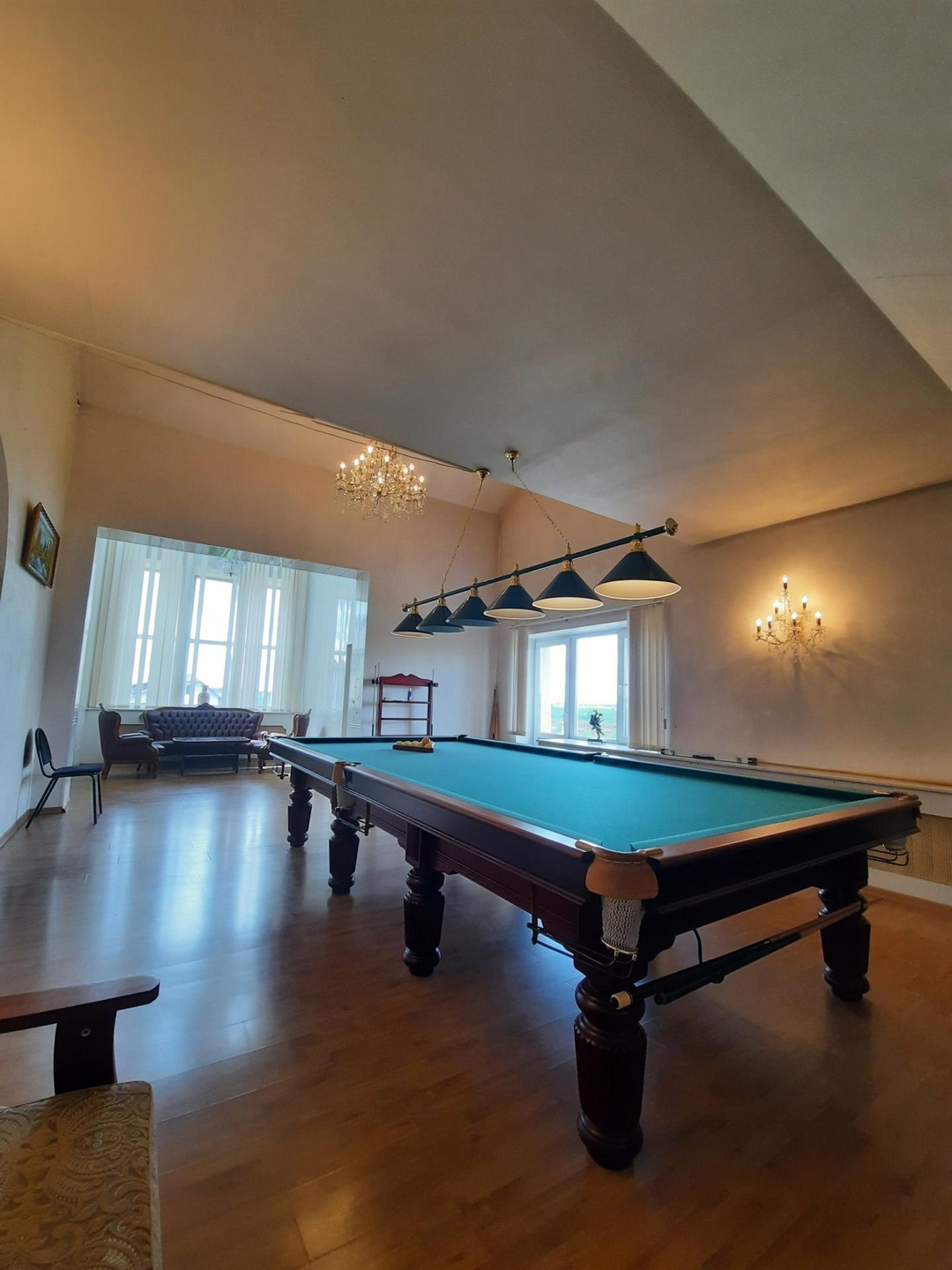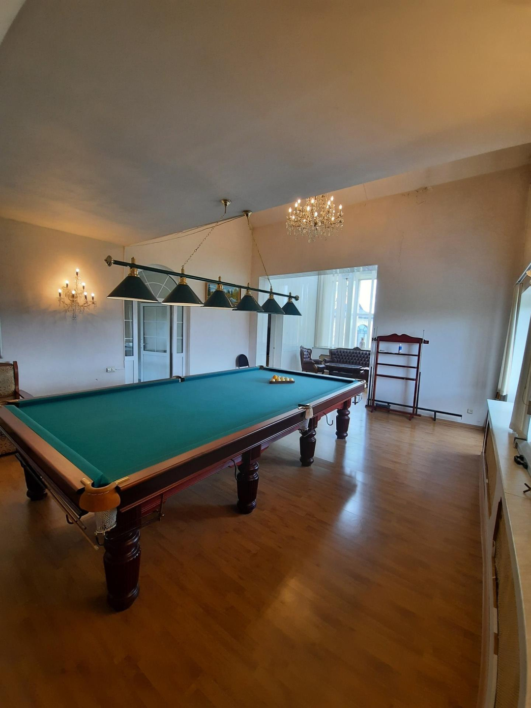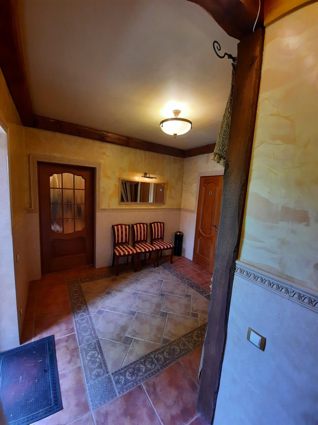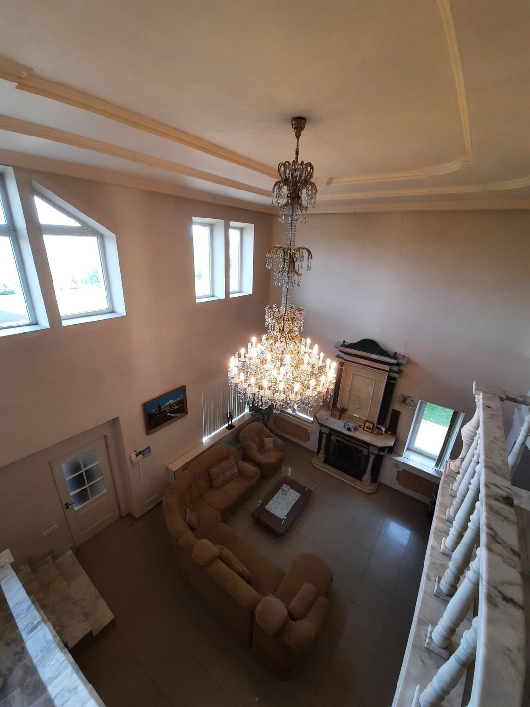 При входе в дом , прихожей Вас встречает огромная люстра , который представляет собой не только впечатляющее количество света, но и являются настоящим произведением искусства.