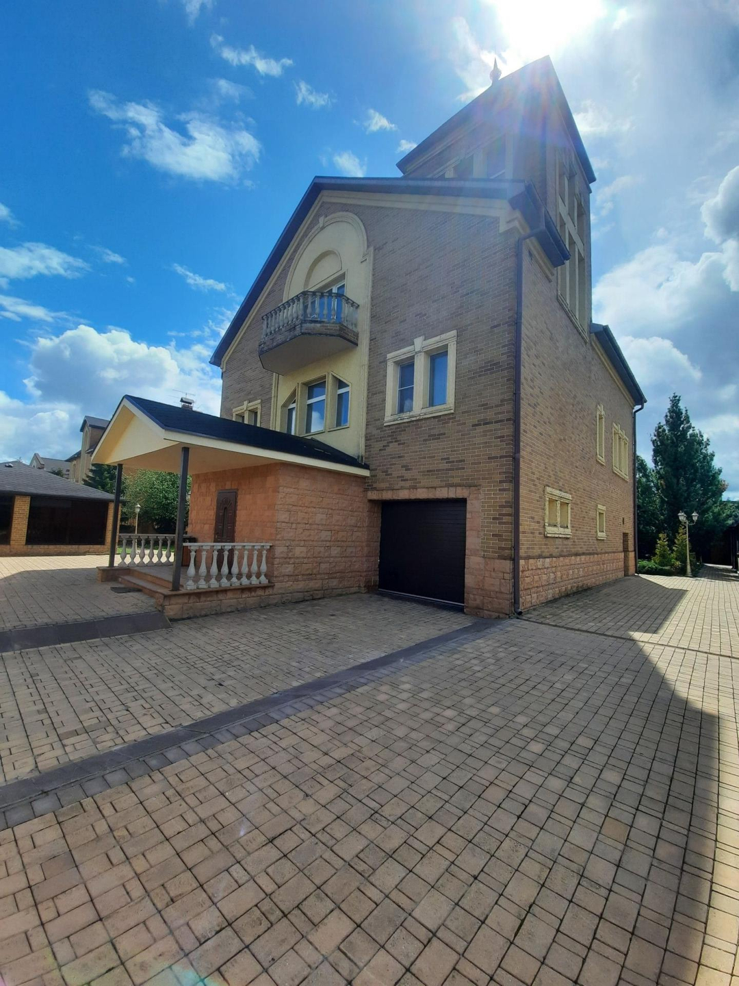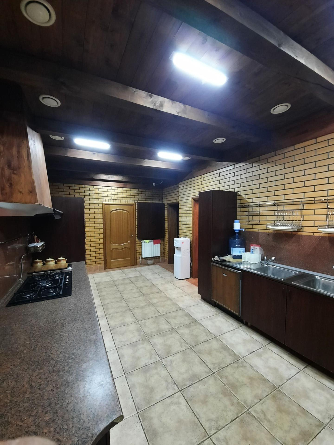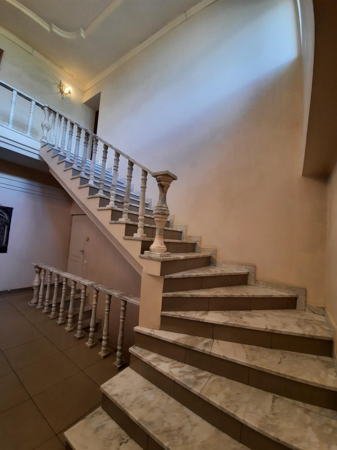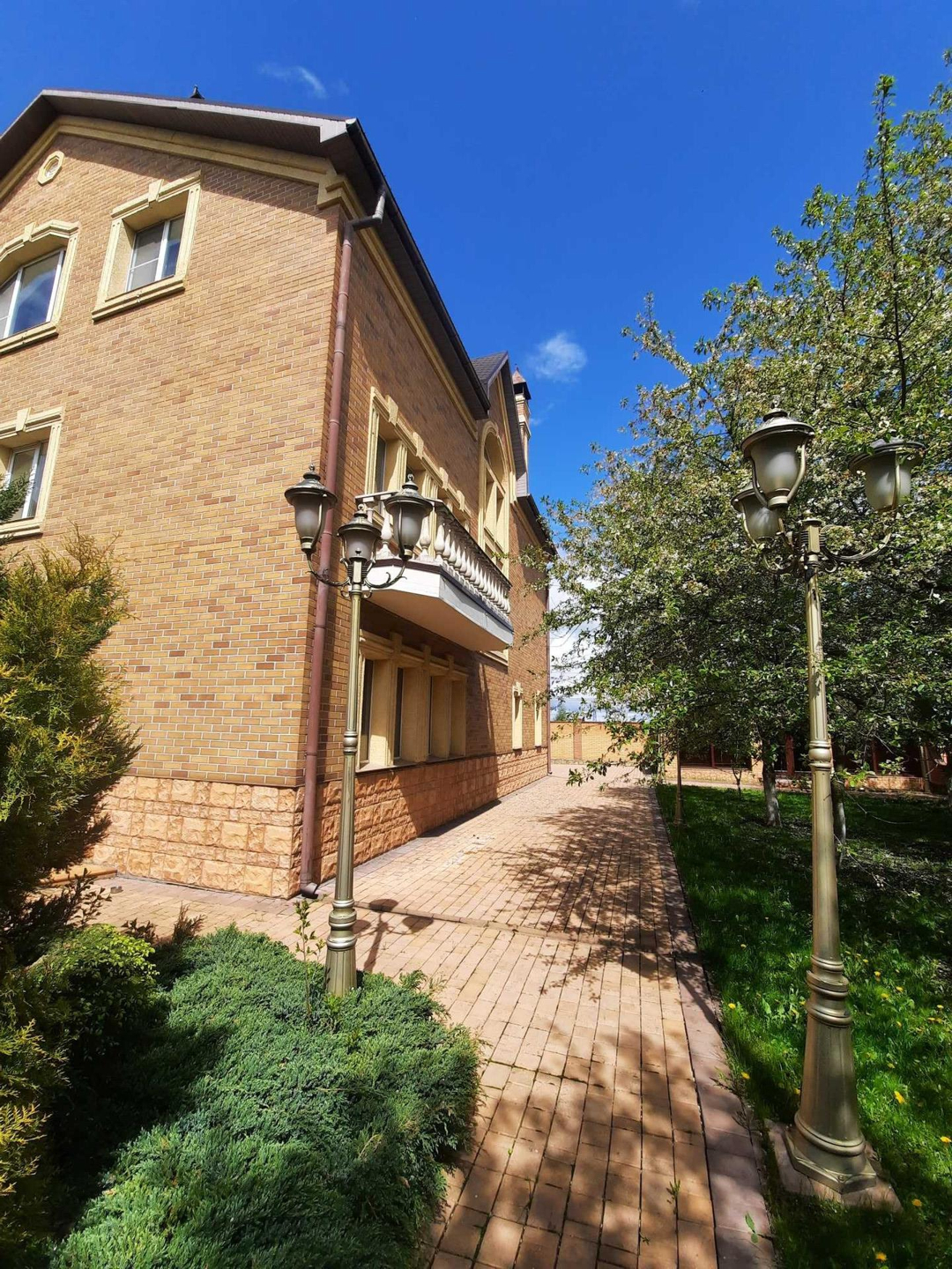 На цокольном этаже дома расположена,зона для отдыха, сауна, басейн , бильярдная с мини баром для алкоголя и дополнительные 3 комнаты для отдыха. На первом этаже кухня, столовая, гостиная с камином. На втором этаже: холл, 2 светлых спальни, 1 ванная комната с джакузи . На третьем этаже: 2 светлых спальни ,бильярдная комната , гардеробная , 1 ванная комната .Так же есть отдельные постройка, где расположен зона охраны со всеми удобствами . На роскошном участке 17 соток выполнен ландшафтный дизайн, из натурального камня, дорожки из брусчатки, игровая площадка , гараж на 2 авто . На территории так же есть 2 новые постройки , большой зал для мероприятии и зона для охраны со всеми удобствами . Дом огорожен высоким заборам.