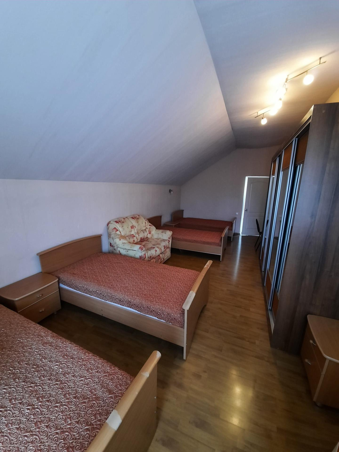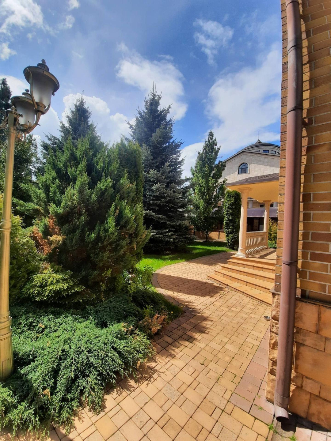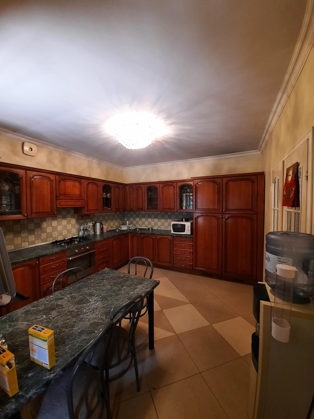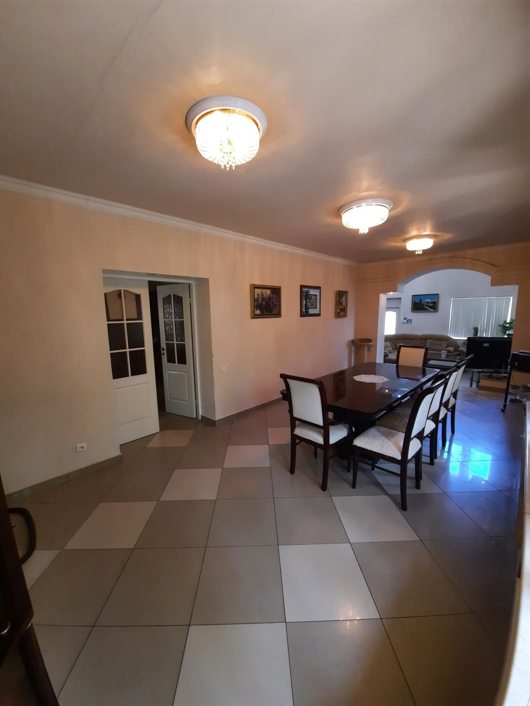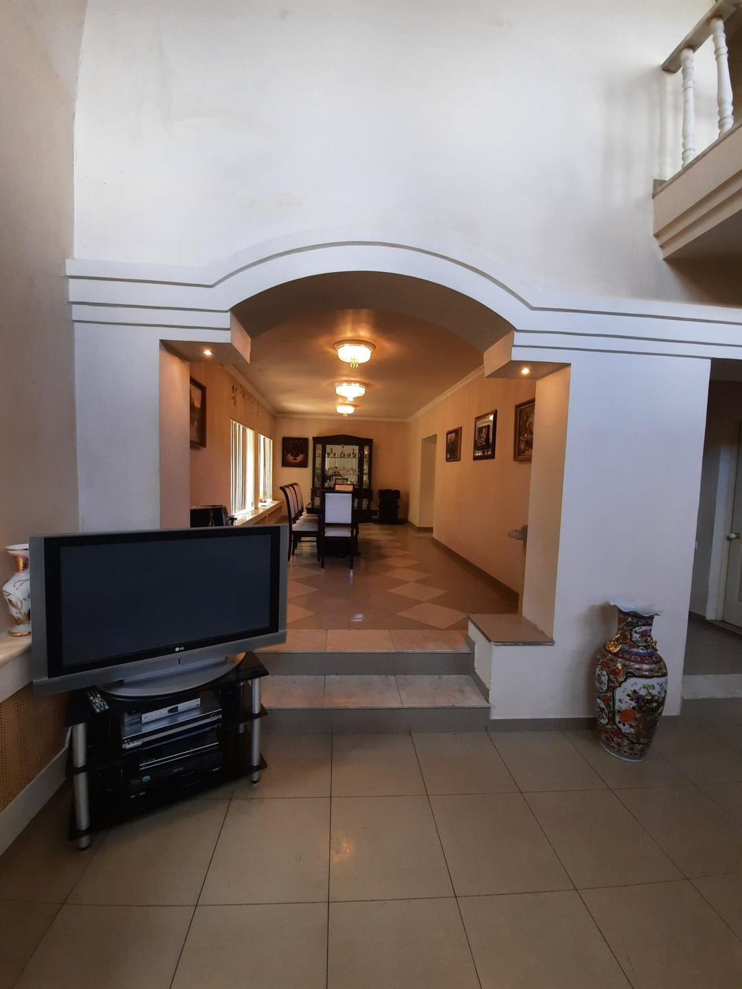 На цокольном этаже дома расположена,зона для отдыха, сауна, басейн , бильярдная с мини баром для алкоголя и дополнительные 3 комнаты для отдыха. На первом этаже кухня, столовая, гостиная с камином. На втором этаже: холл, 2 светлых спальни, 1 ванная комната с джакузи . На третьем этаже: 2 светлых спальни ,бильярдная комната , гардеробная , 1 ванная комната .Так же есть отдельные постройка, где расположен зона охраны со всеми удобствами . На роскошном участке 17 соток выполнен ландшафтный дизайн, из натурального камня, дорожки из брусчатки, игровая площадка , гараж на 2 авто . На территории так же есть 2 новые постройки , большой зал для мероприятии и зона для охраны со всеми удобствами . Дом огорожен высоким заборам.