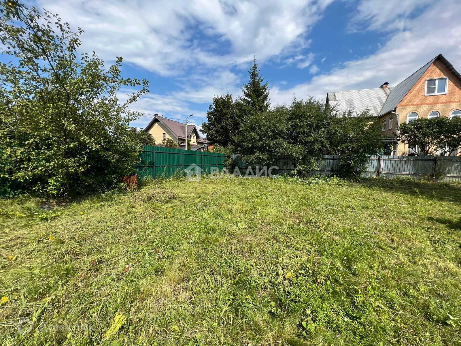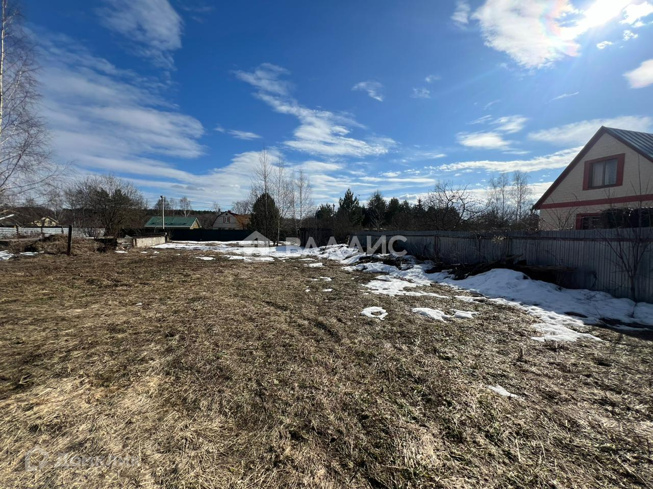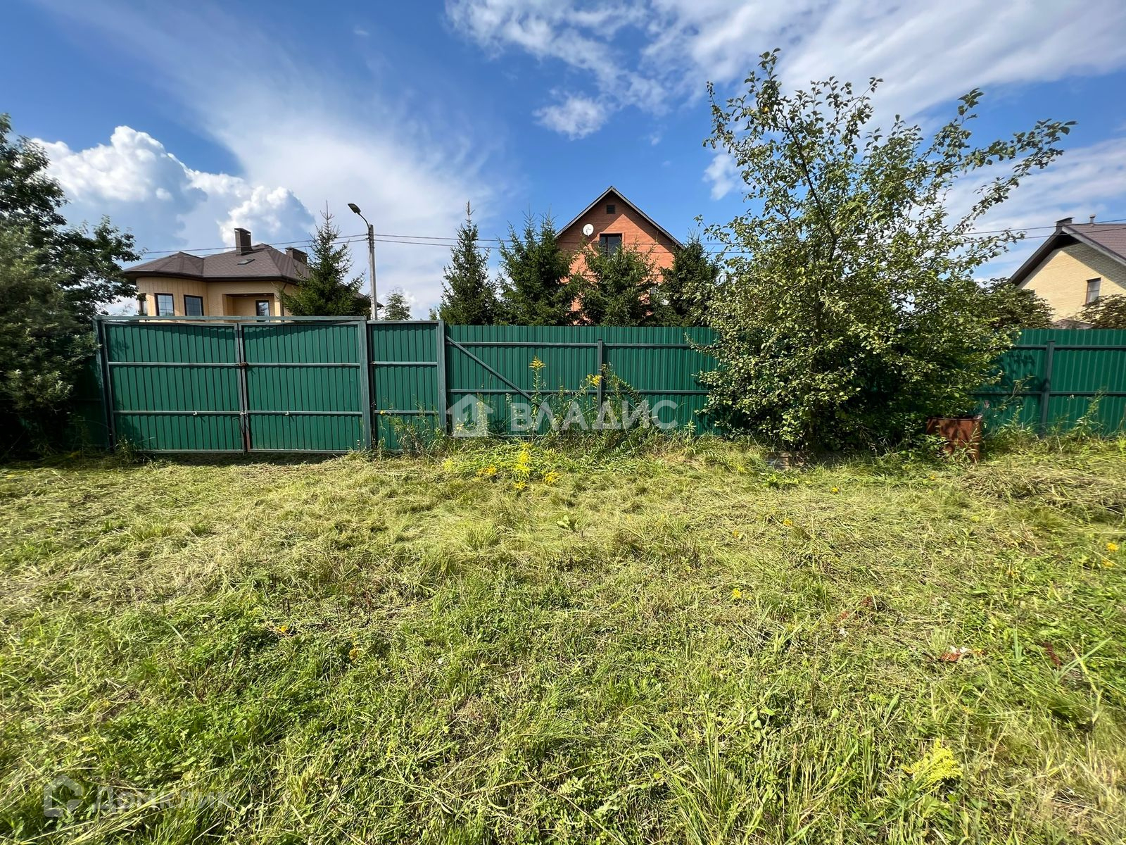 Огорожен со всех сторон забором- металлопрофиль, есть калитка и въездные ворота. Заезд возможен с двух сторон.