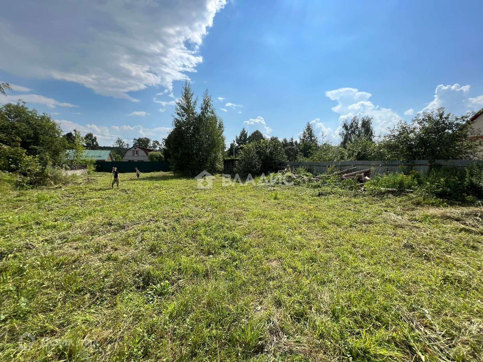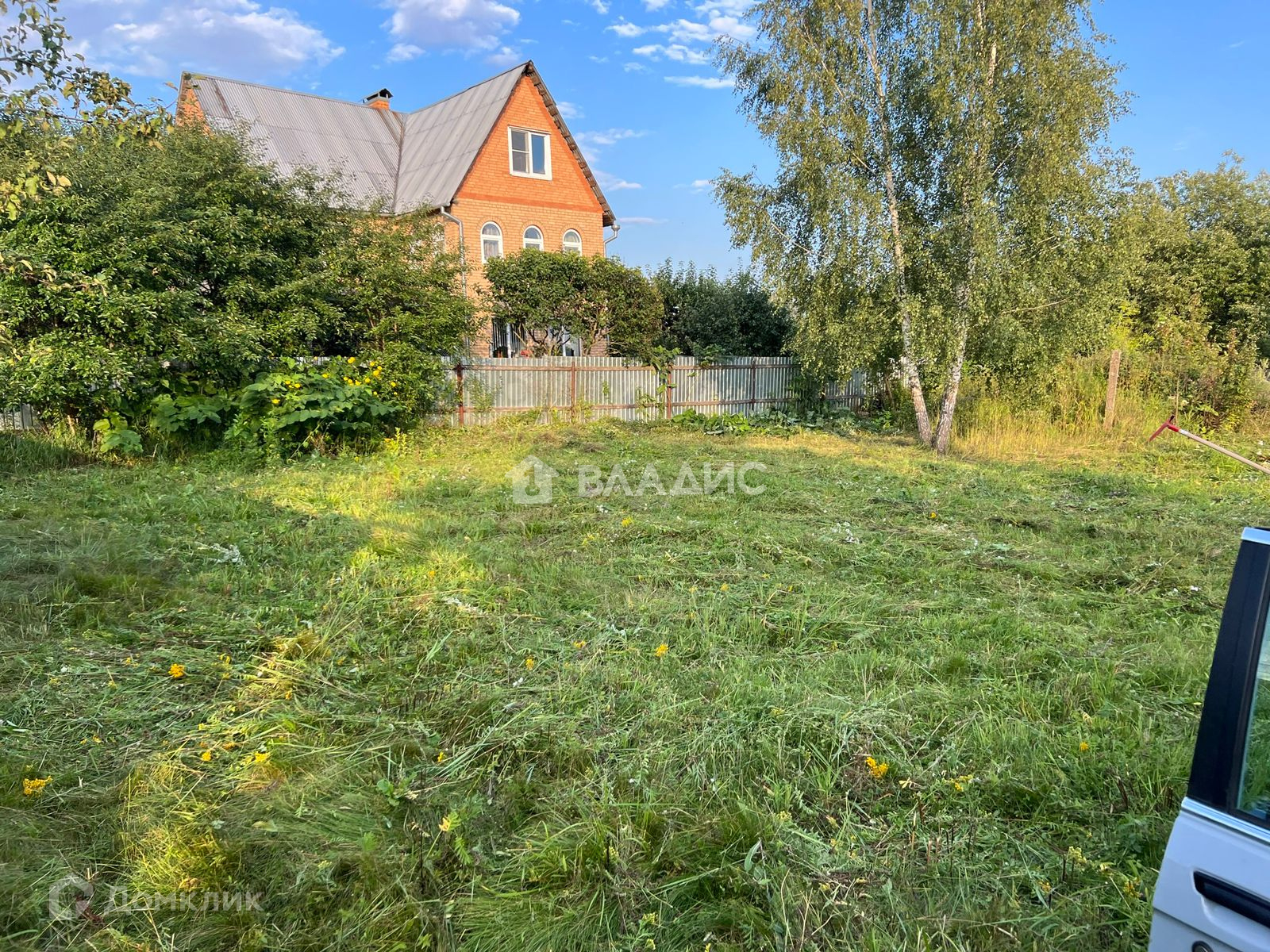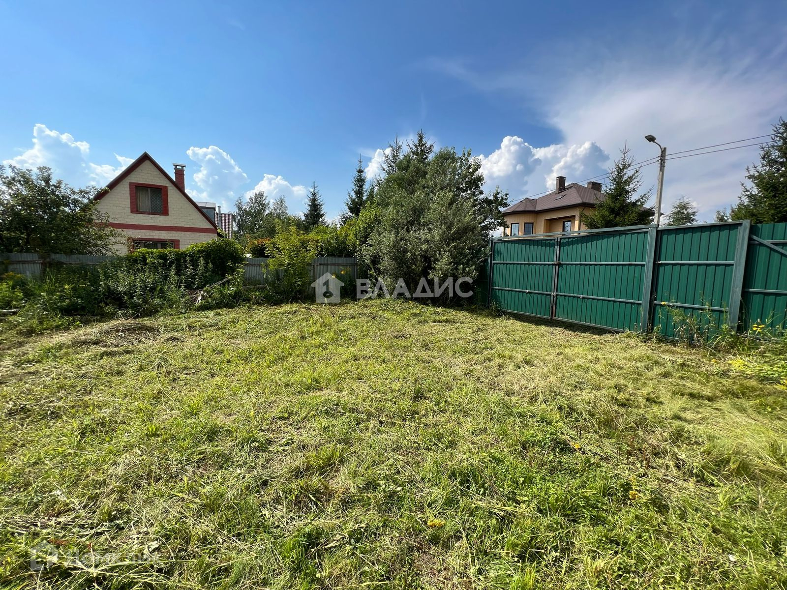Огорожен со всех сторон забором- металлопрофиль, есть калитка и въездные ворота. Заезд возможен с двух сторон.