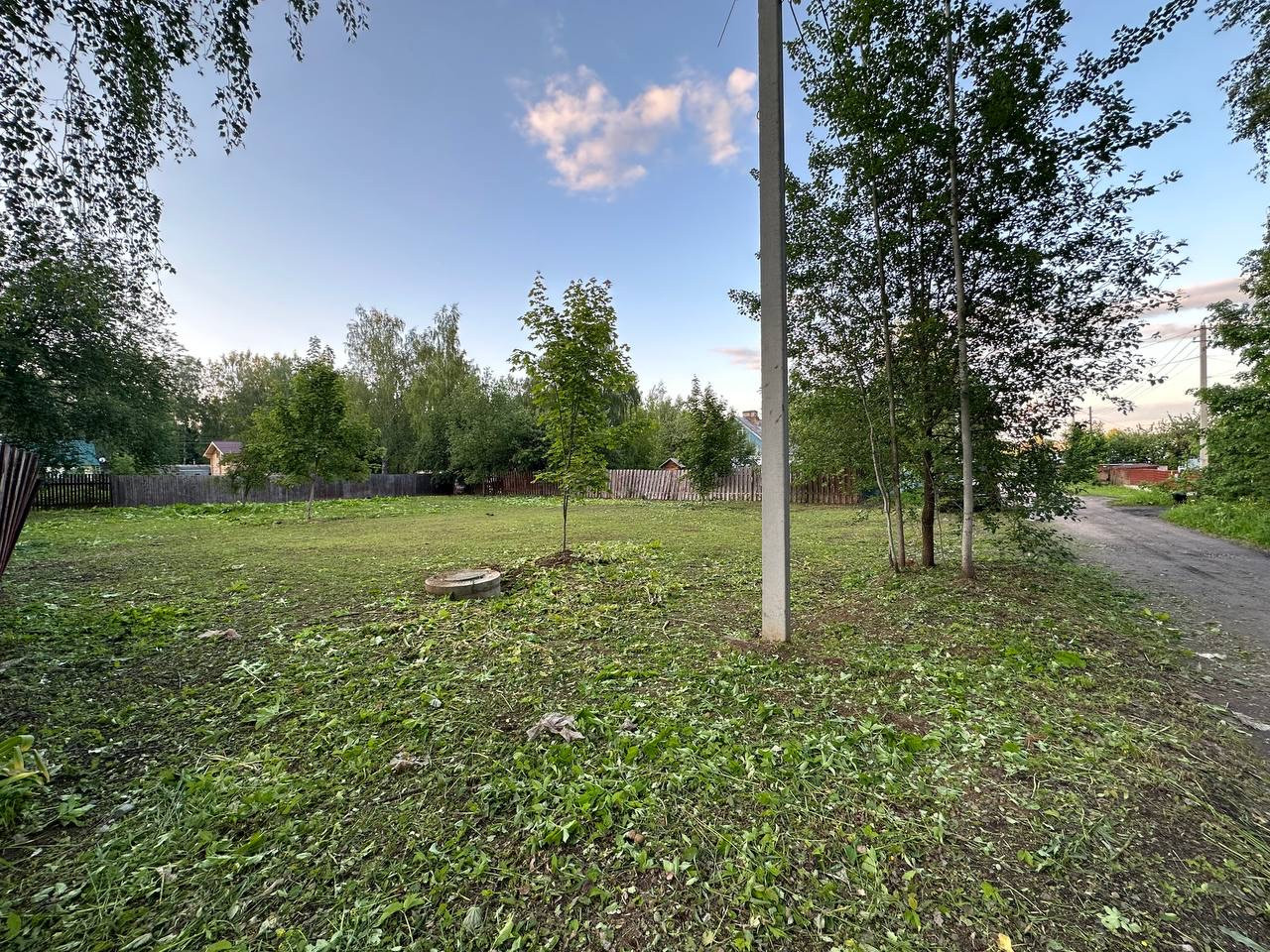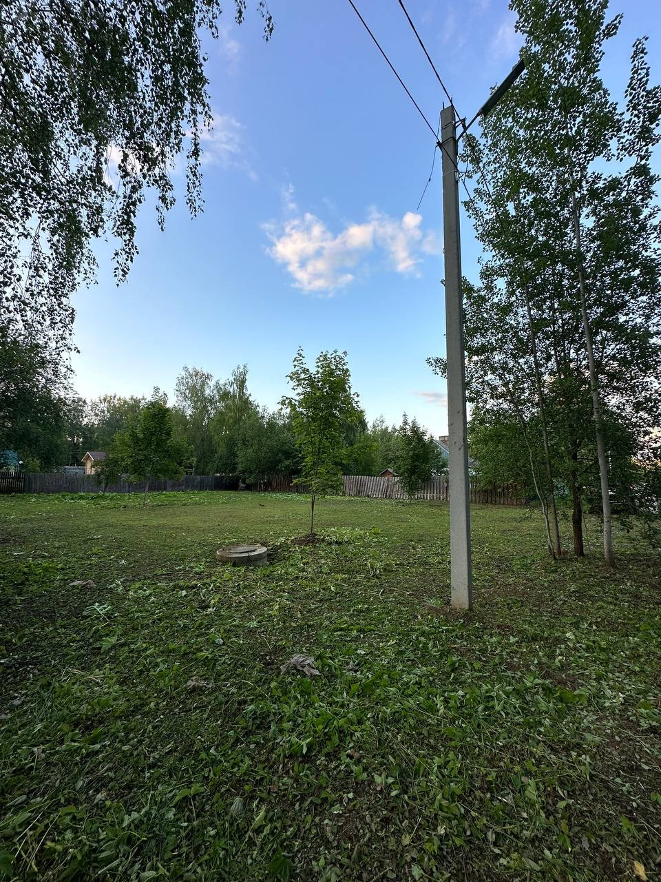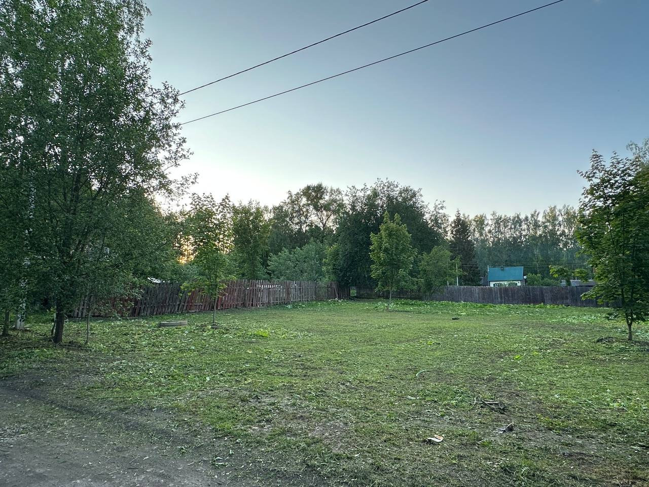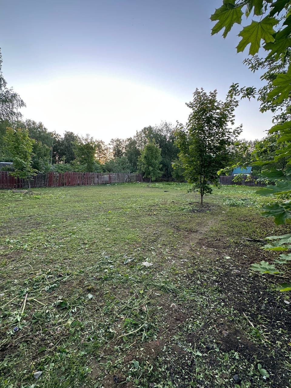 Участок ровный, прямоугольной формы. Полностью почищен, можно строиться.