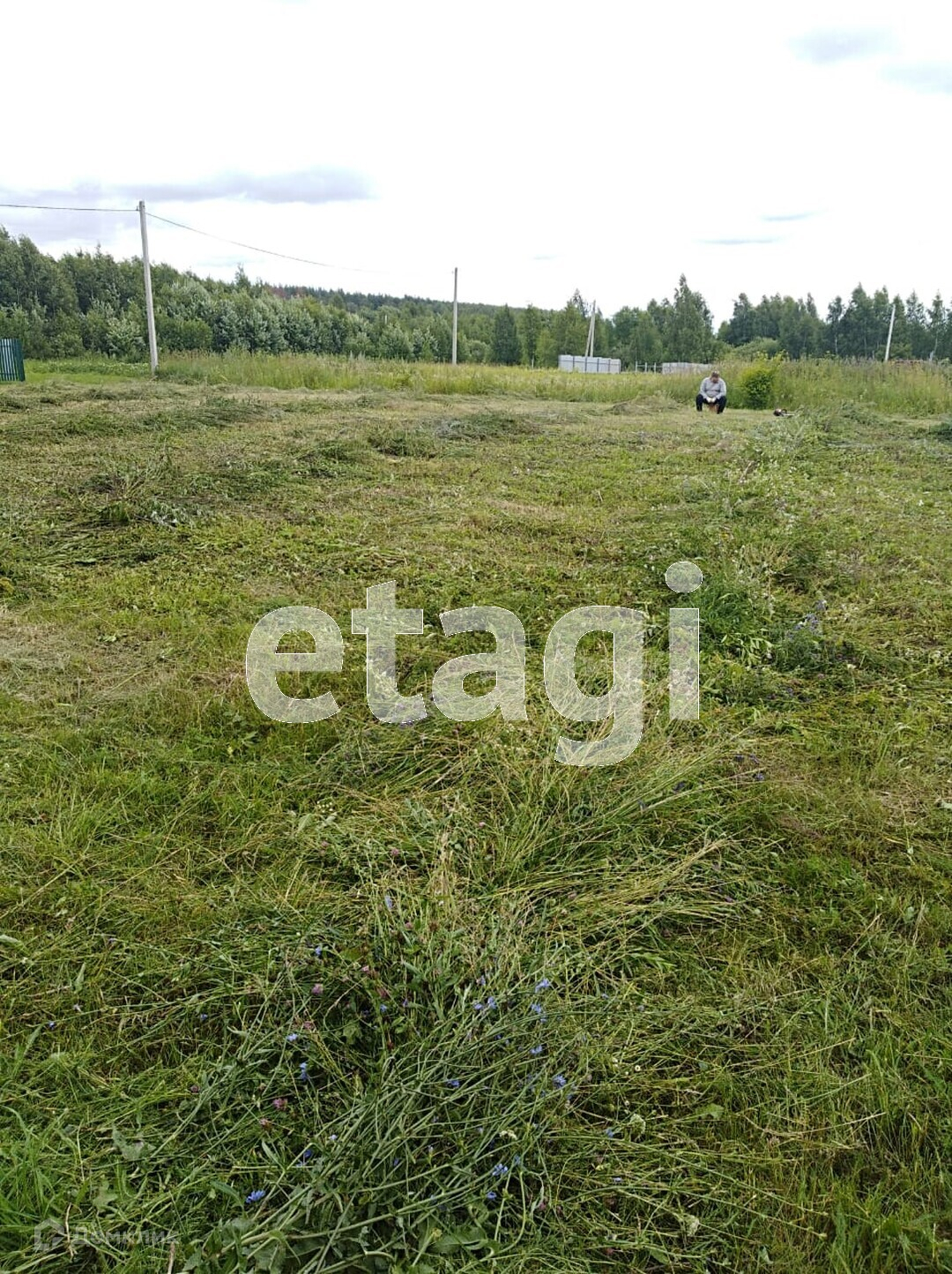 По границе участка установлены столбы ЛЭП.