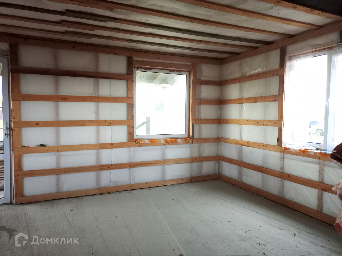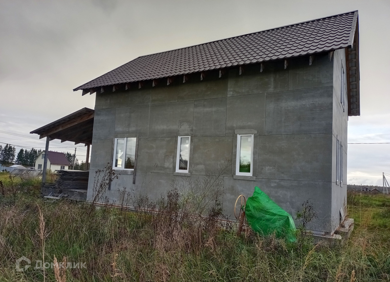 Дом каркасный, крыша - металлочерепица, установлены окна ПВХ.