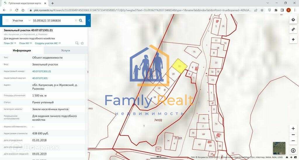 Кадастровый номер: 40:07:071301:18 Продается земельный участок 15 соток под ИЖС в деревне Рыжково. Земли населенных пунктов, ЛПХ. С трех сторон окружен лесом. Всего продается 5 квадратных участков по 15 соток каждый. Участки граничат друг с другом. Общей границы с соседями нет. Любой участок 15 соток продается по отдельности, но если купить все участки вместе, то будет гораздо дешевле - см. мои лоты. Кадастровые номера: 40:07:071301:19 40:07:071301:16 40:07:071301:20 40:07:071301:21 Подъезд – после асфальта 700 метров общая бетонка до деревни, 150 метров отдельная грунтовка. В деревне есть вышка сотовой связи. 5 участков запитаны собственной подстанцией на 63 кВА. Электричество проходит по границе участка. Деревня включена в подпрограмму газификации Жуковского района. До реки Нары по прямой 600 метров. В 300 метрах от участка знаменитый Святой Рыжковский родник. В 800 метрах собор Успения Пресвятой Богородицы, сейчас недействующий. Впервые упомянут в 1505 году. В XVII веке деревня Рыжково было вотчиной семьи Нарышкиных. Здесь выросла мать Петра I - Наталия Нарышкина. Сюда Петр I приезжал в детстве и уже будучи взрослым. Древнее, очень красивое и тихое место.