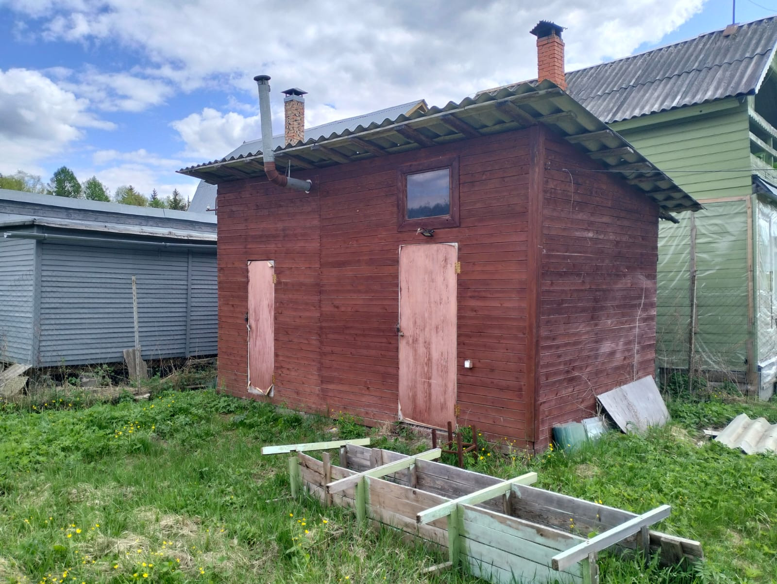 Продается 2-ух этажный дом, 2021 г. постройки. Адрес : деревня Рыжково, территория садоводческого некоммерческого товарищества Роднички, дом 82. Дом назначение-жилой, прописка! Нзначение земли- садоводство. Первый этаж брус, второй, летний, в доме отопление печь и электрокотел на 3 кВт, с разводкой батарей по всему первому этажу, вода зимняя и кабель с подогревом, септик канализация, свет 6 кВт, ворота откатные, новые, облицовка начата в прошлом году, мебель остаётся, плита газ-балон, в доме туалет и душ, на улице хозблок и летний туалет. Свободная продажа, один собственник.
