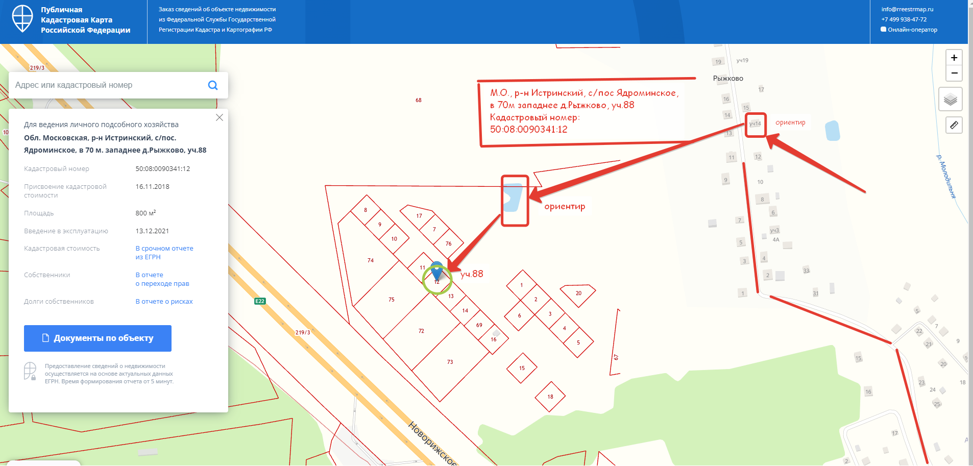 Продается земельный участок 8 (восемь) соток, расположенный по адресу: Московская область, Истринский район, сельское поселение Ядроминское, деревня Рыжково, Кадастровый номер: 50:08:0090341:12.