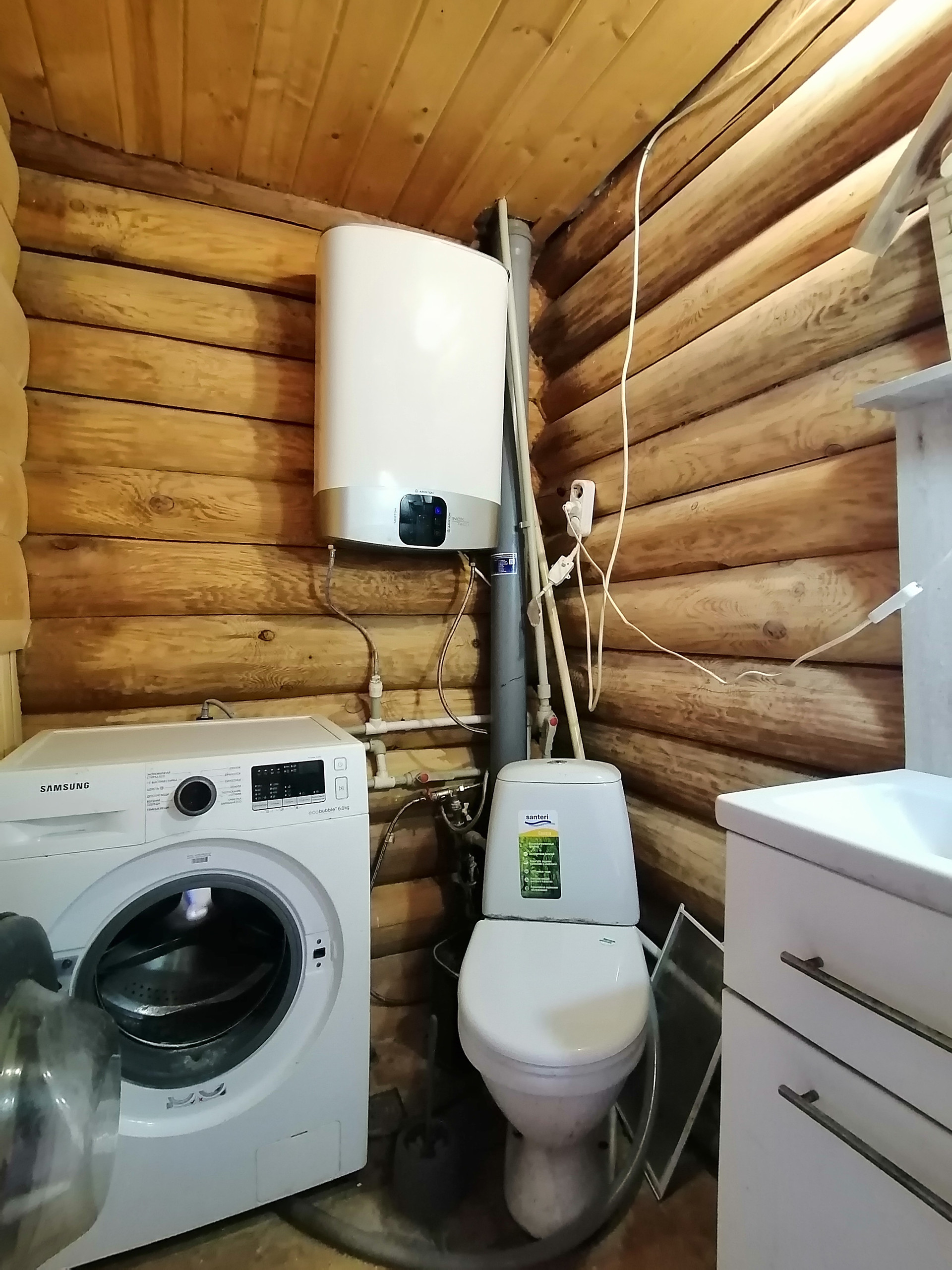 Коммуникации: электричество и в бане, и в доме, cобcтвeнная скважина, рядом с домом общeпоcелковaя водонaпoрная бaшня, канализация, газовая труба находится на территории участка.