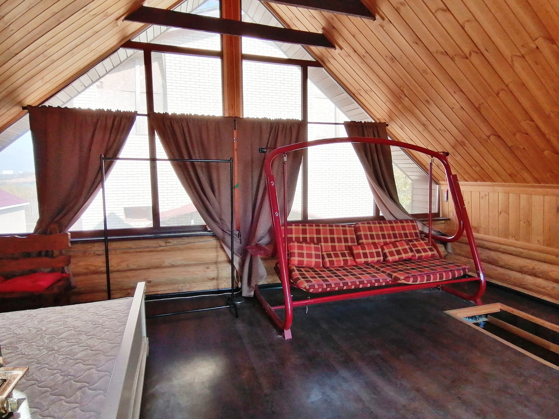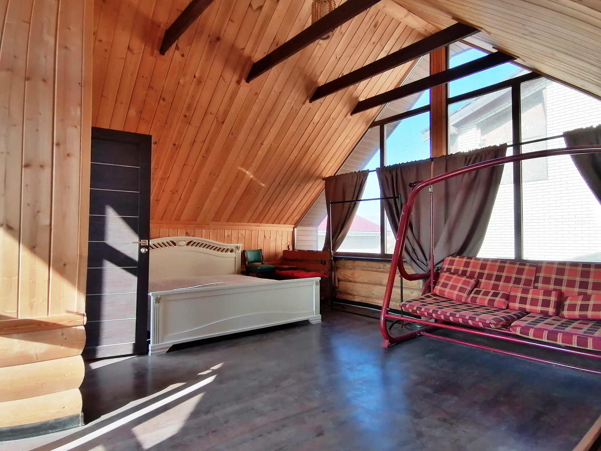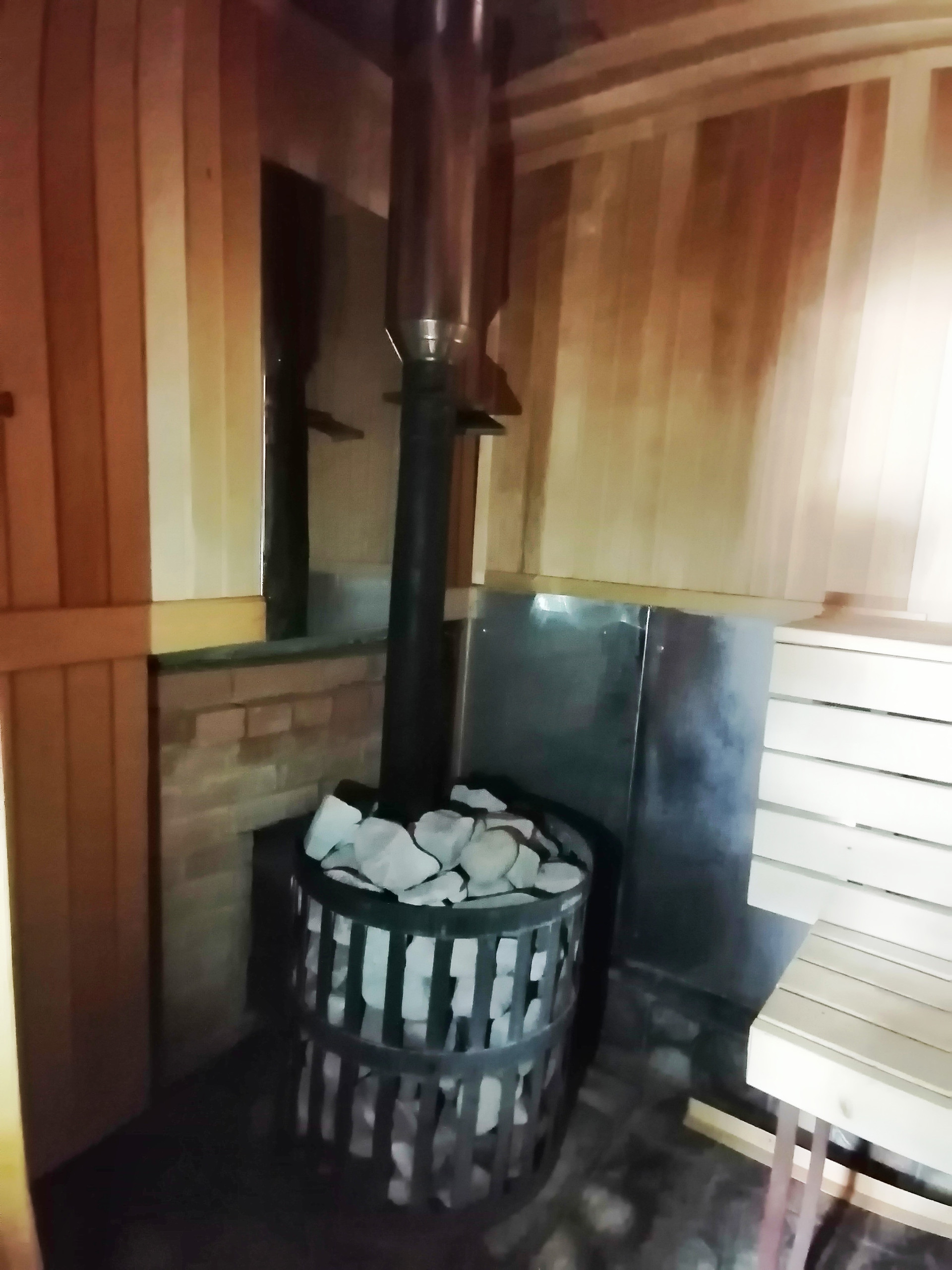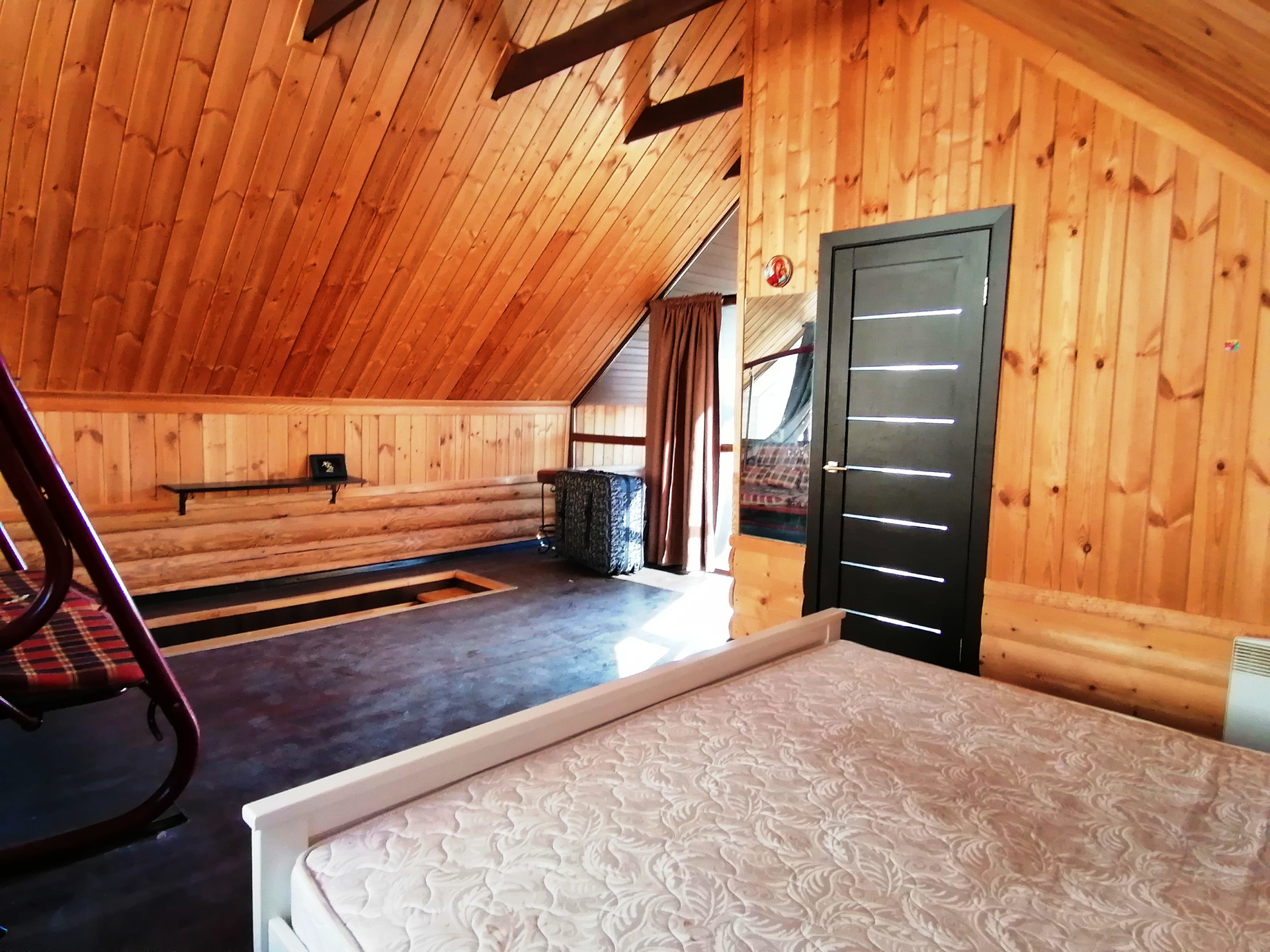 На данный момент на территории земельного участка, на котором располагается коттедж, построена баня (65 кв.м.), которая по своей сути как полноценный дом. На первом этаже, помимо банного помещения, разместилась кухня-гостиная, душевая кабина и туалет. На втором - полноценная спальная комната со своим санузлом, с балконом на всю длину дома, из которого открывается вид на поле. Баня полностью функционирует.