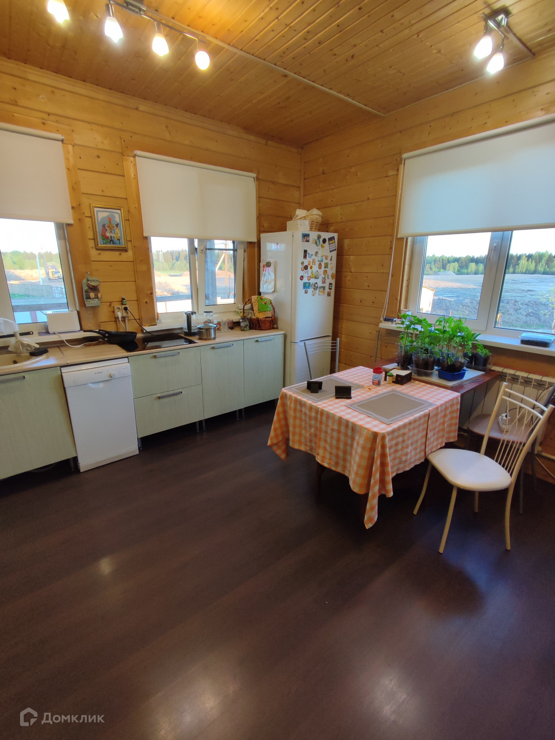Арт. 66285983 В часе езды от города продается отличный теплый дом из клееного бруса 2013 года постройки.  2 этажный, площадь 137 кв.м + терасса 25 кв.м. В доме 4 спальни, 2 санузла, просторная  кухня-столовая, подсобные помещения, подвал по всему периметру дома. Отопление газовый котел (газгольдер), электричество 10 кВт, вода в доме от своей скважины,  канализация - септик (биостанция).