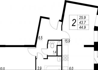 Продажа двухкомнатной квартиры, 43.7 м2, Рождественская улица, 1
