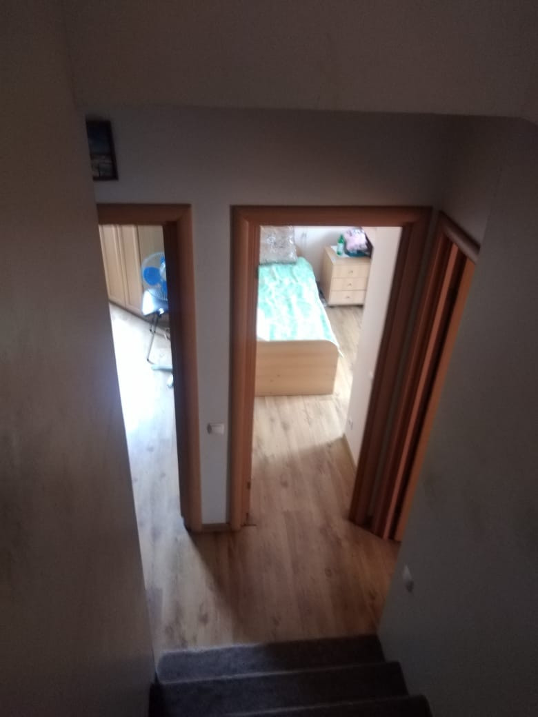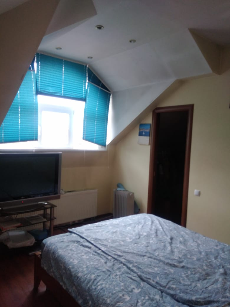 Общей площадью 160 кв.м. С удобной планировкой.(идеально для большой семьи). На первом этаже кухня-гостиная и санузел, на втором этаже 3  спальни и санузел с ванной . На мансардном этаже большая хозяйская спальня с гардеробной, профессиональной беговой дорожкой и большим санузлом с просторной треугольной ванной. Имеется балкон с видом на Пятницкие Кварталы. Есть просторная парковка (до шести машин) с собственным въездом и отдельный входом в закрытую зону коттеджного поселка.