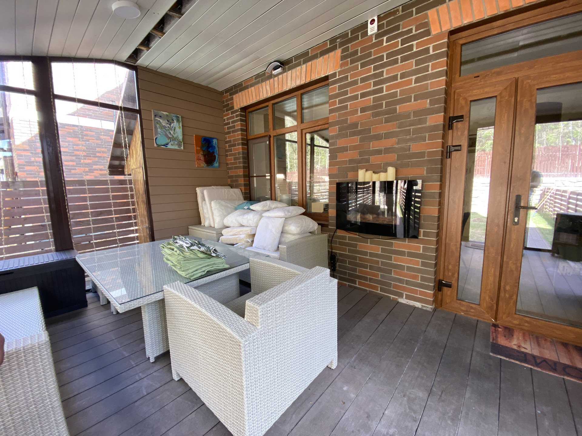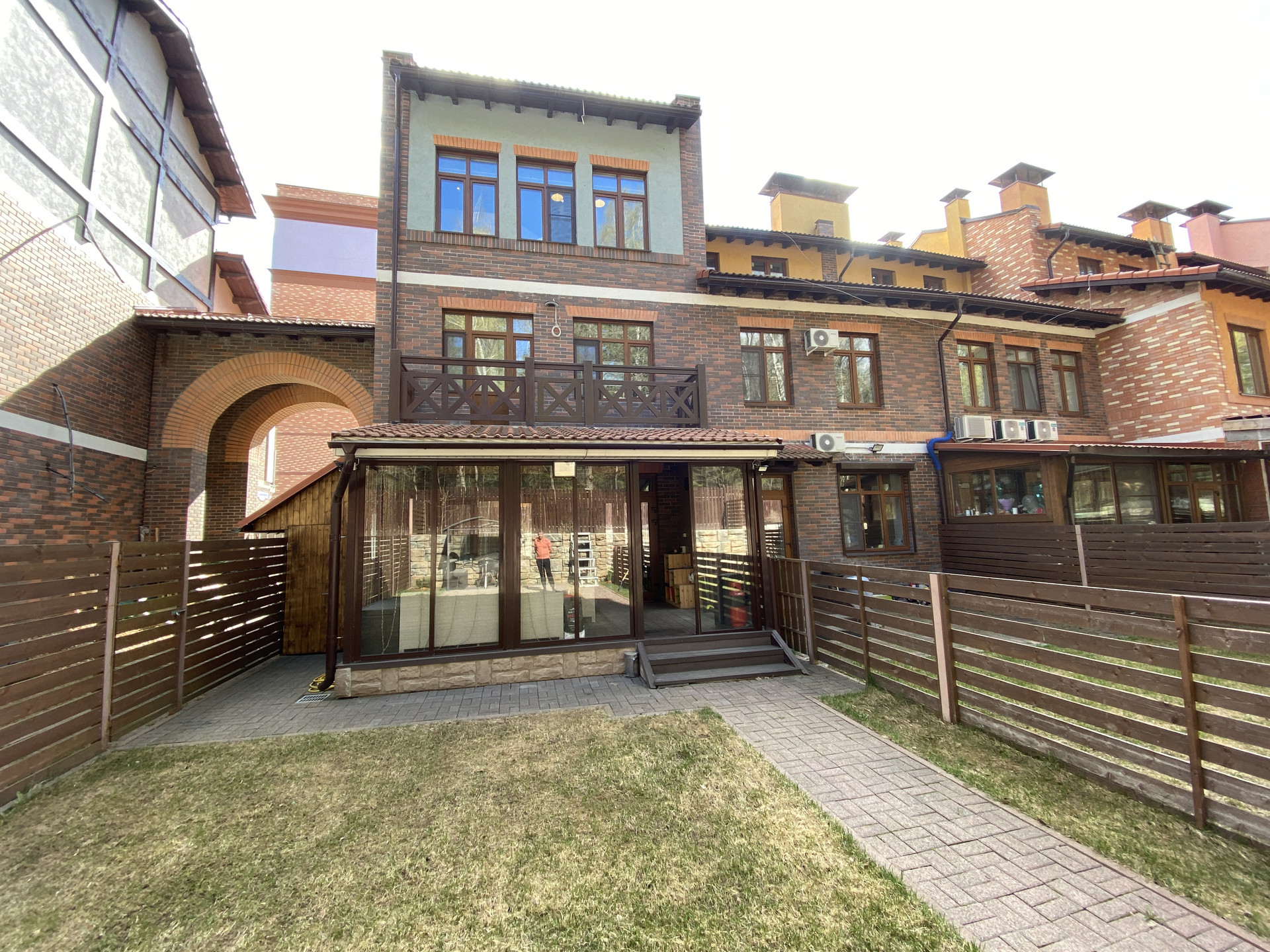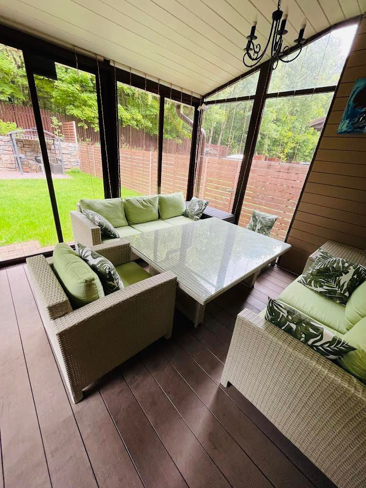 Все коммуникации центральные (свет, вода, отопление), стоимость обслуживания как в обычной квартире. Застекленная крытая веранда с камином. Собственный участок с зоной BBQ.