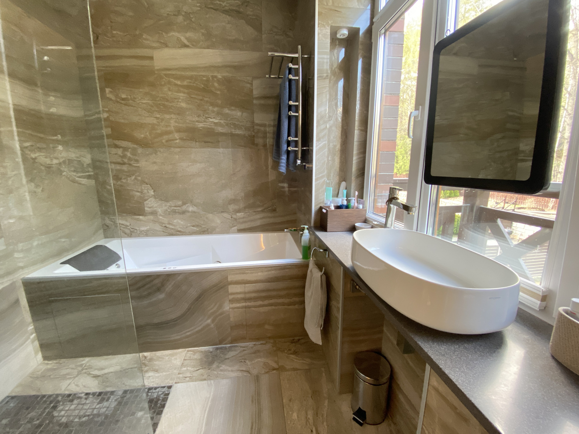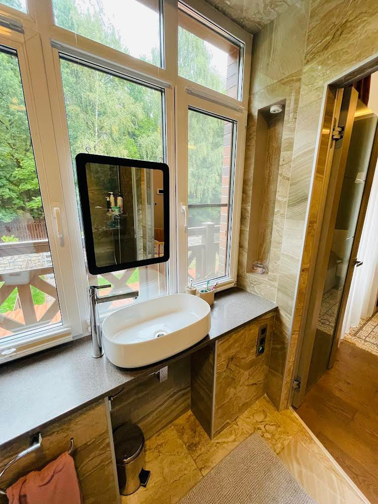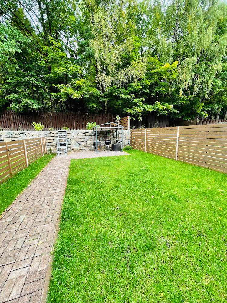 Потрясающий 3-х этажный таунхаус с высокими потолками, высочайшим уровнем дизайнерской отделки и самым высококачественным оборудованием, с собственной террасой и благоустроенным участком (с отдельным кадастром) с барбекю и выходом в лес.