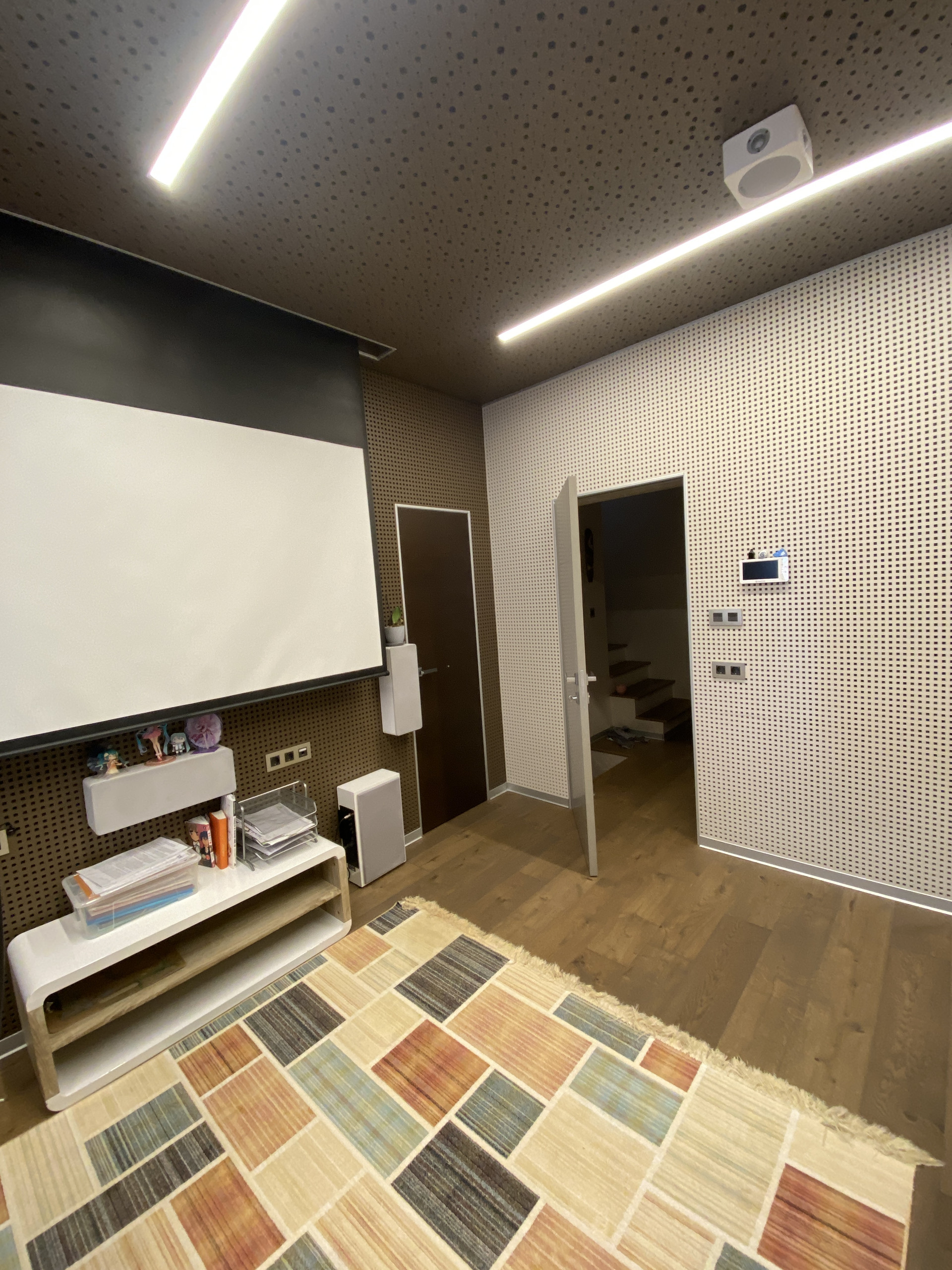 В квартире новый современный ремонт, в т.ч. полностью оборудованная кухня с индукционной плитой, комбинированной духовкой с микроволновкой, со встроенными посудомоечной, стиральной машинкой, сушилкой фирмы ASKO (Швеция); теплые полы (водяные + электрические) по всему первому этажу и санузлам, покрытых дорогой плиткой из Италии и Испании, сантехника Grohe (Германия); кухня Hanak (Чехия); 4 санузла, оборудованных душевыми кабинами и гидромассажными ваннами Jacuzzi (Италия); деревянные полы и лестница из инженерной доски Coswick; кинотеатр в отдельной шумопоглощающей комнате Dolby Atmos(!); климатические системы во всех комнатах Mitsubishi Electric (Япония); 3 роскошных гардеробных, LED освещение по всему дому.