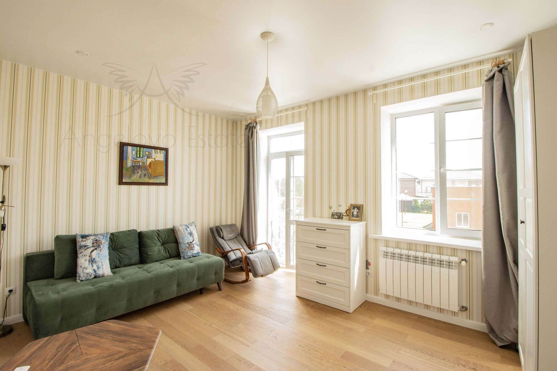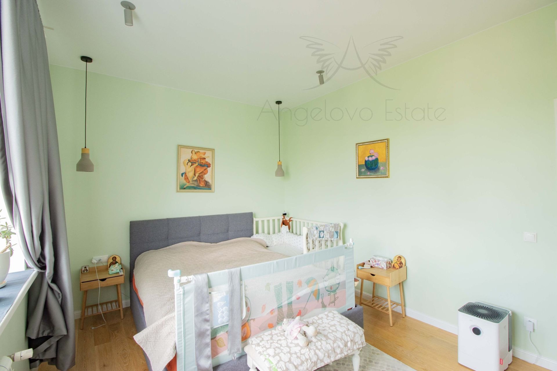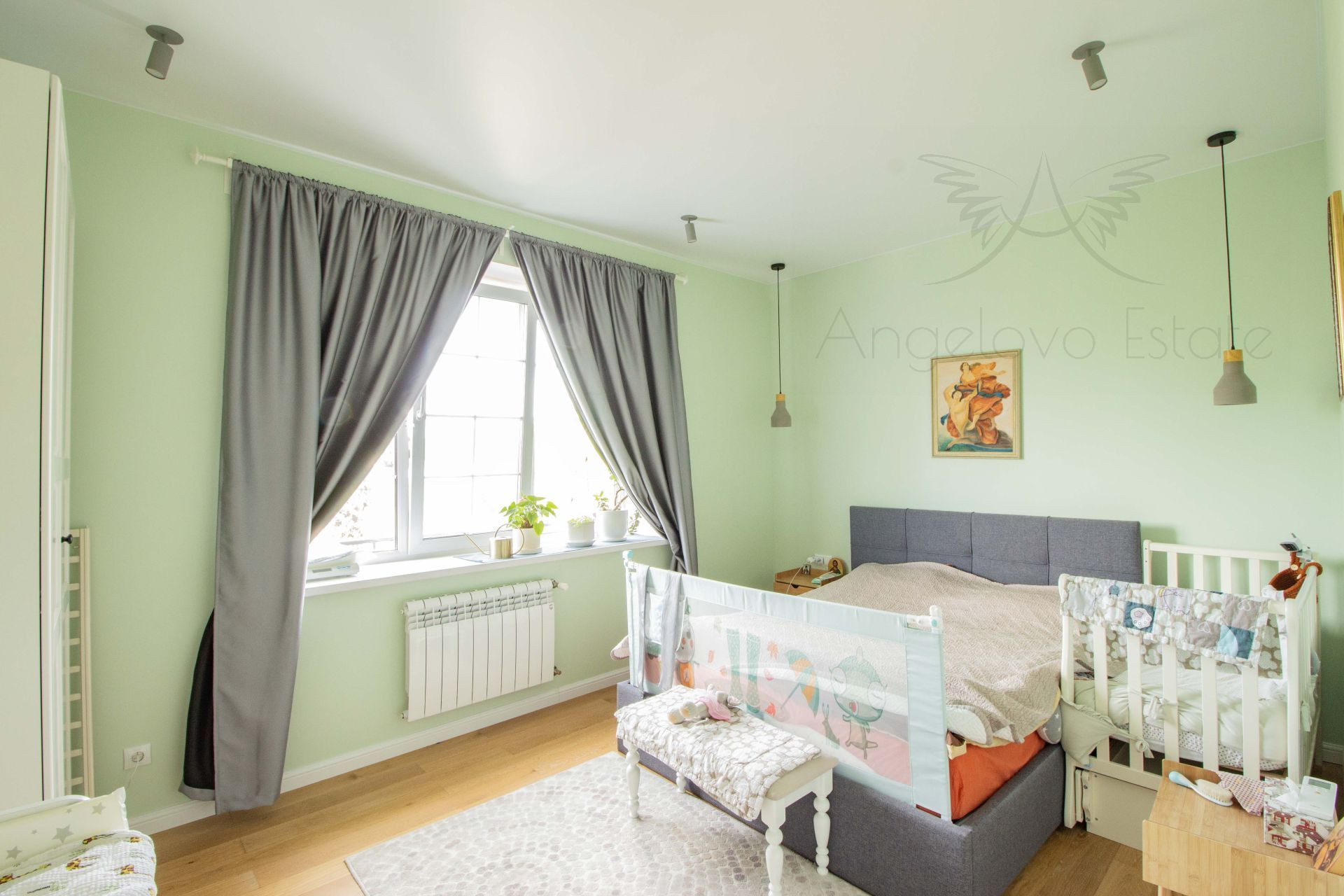 На 2 этаже просторная светлая спальня, большая детская с двумя окнами и французским балконом и большой санузел с ванной.