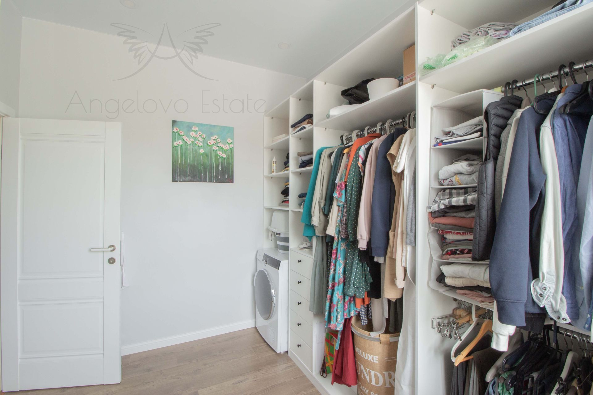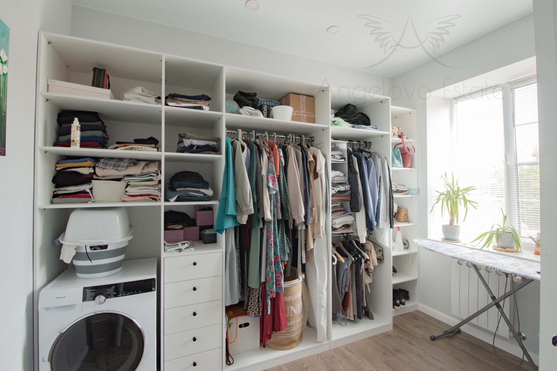 Кухня оборудована современной бытовой техникой: посудомоечная машина, плита, духовка, встроенная СВЧ, в гардеробной установлена сушильная машина.