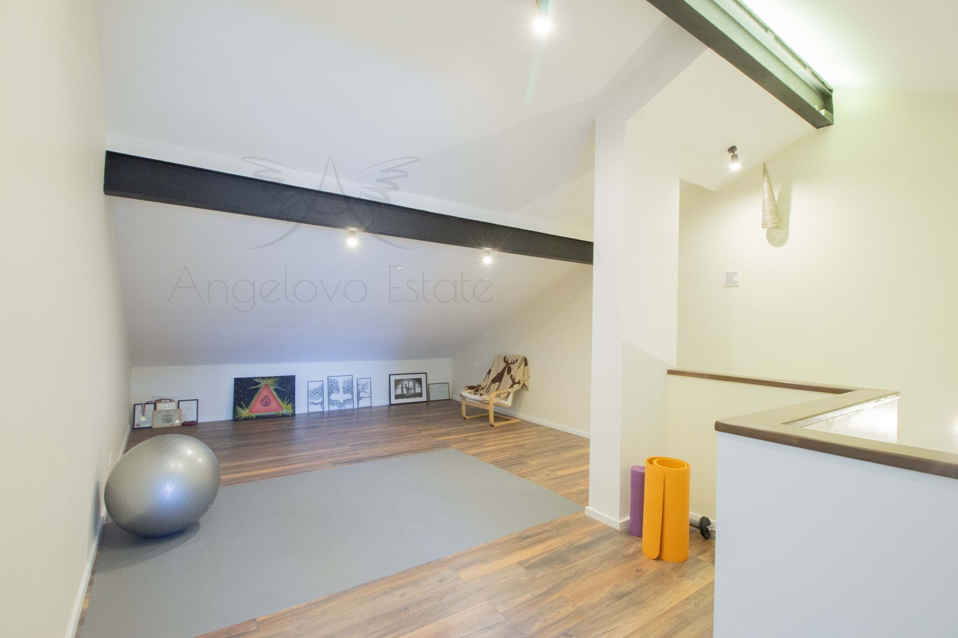 На 3-м этаже комната и просторный зал, который может служить игровой, тренажерным залом, кинотеатром, студией, спальней.
