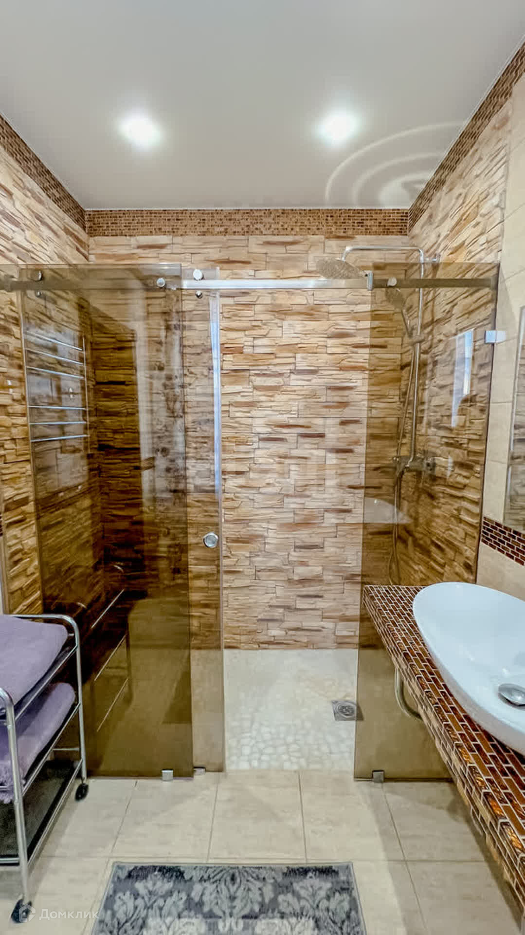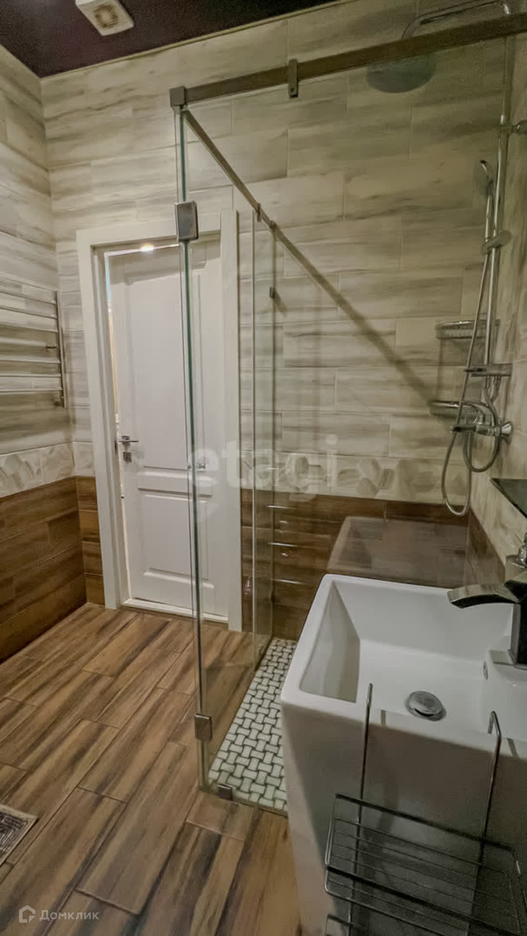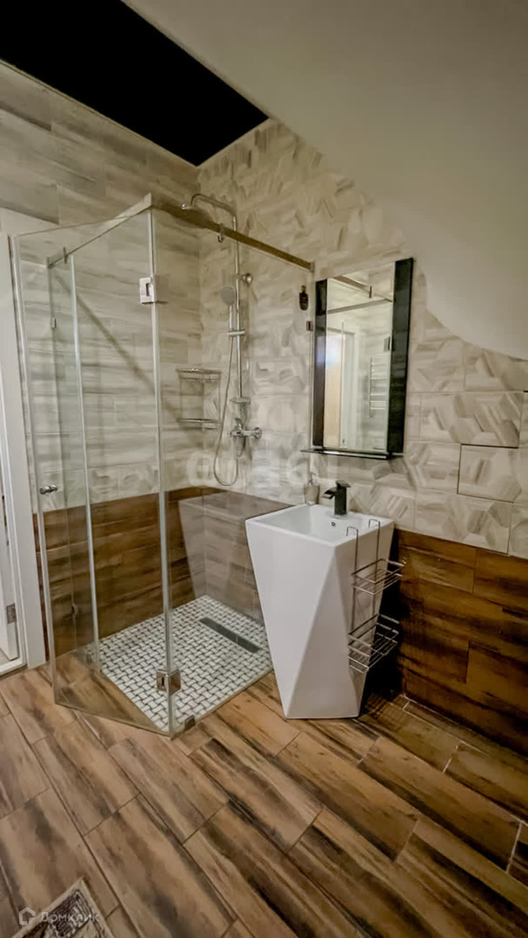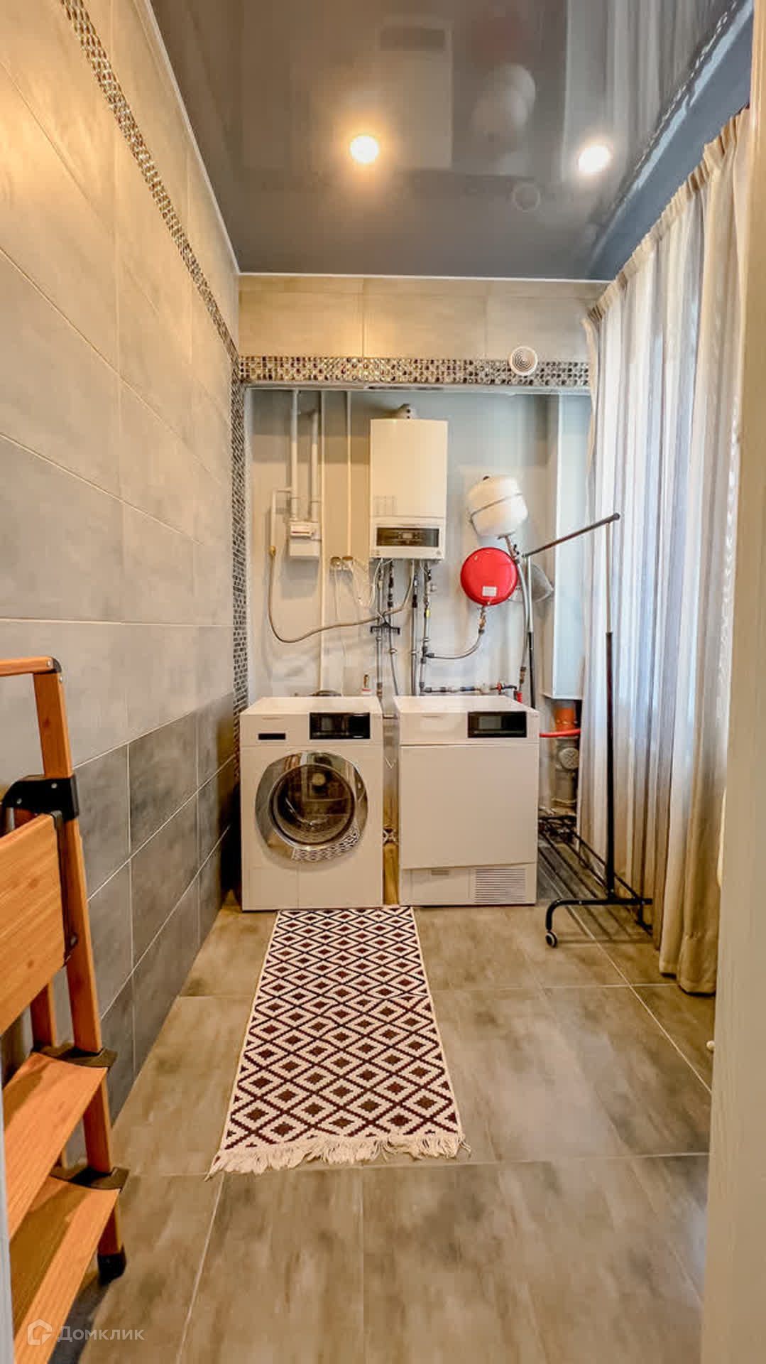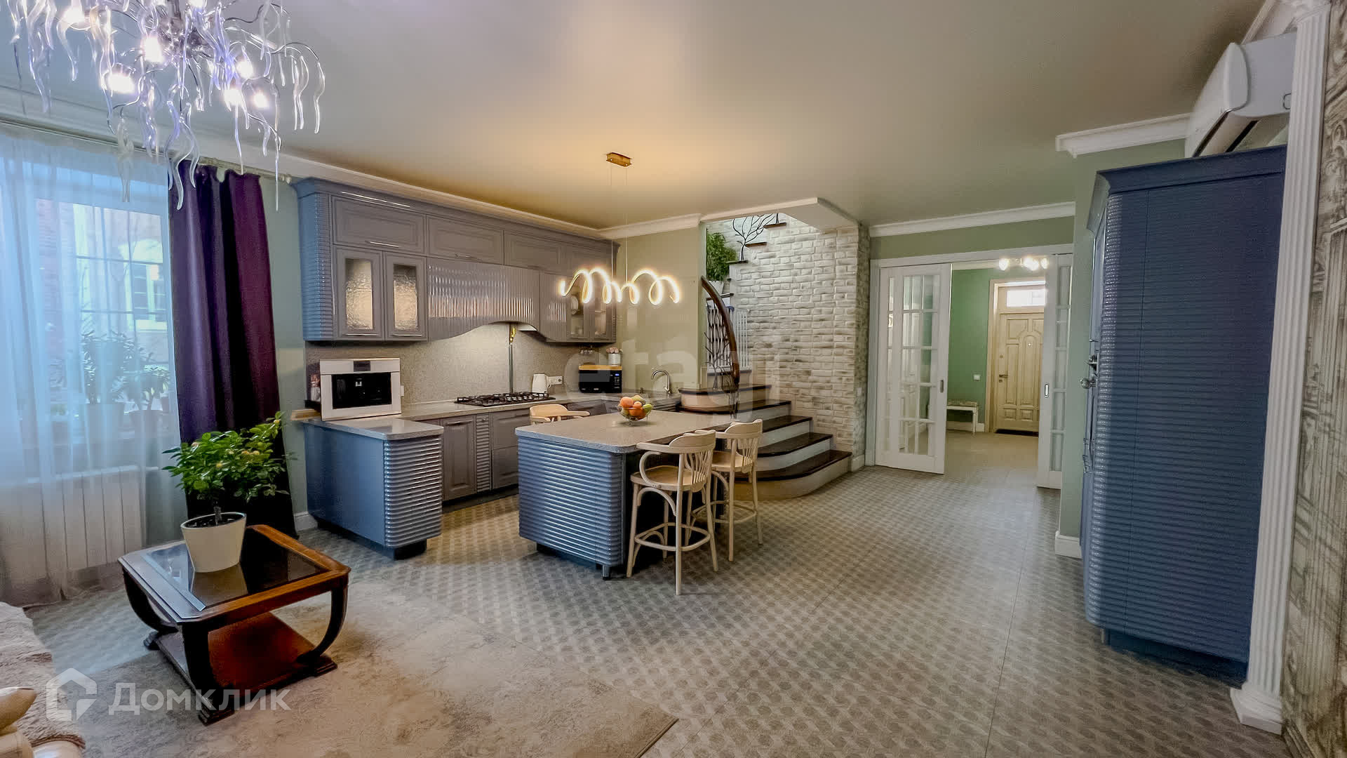 Первый этаж включает просторную кухню-гостиную, санузел и прачечную. Второй этаж состоит из спальни с большой гардеробной и санузла, а также гостевой комнаты с санузлом. Третий этаж отведен под зону отдыха и гостевую комнату.