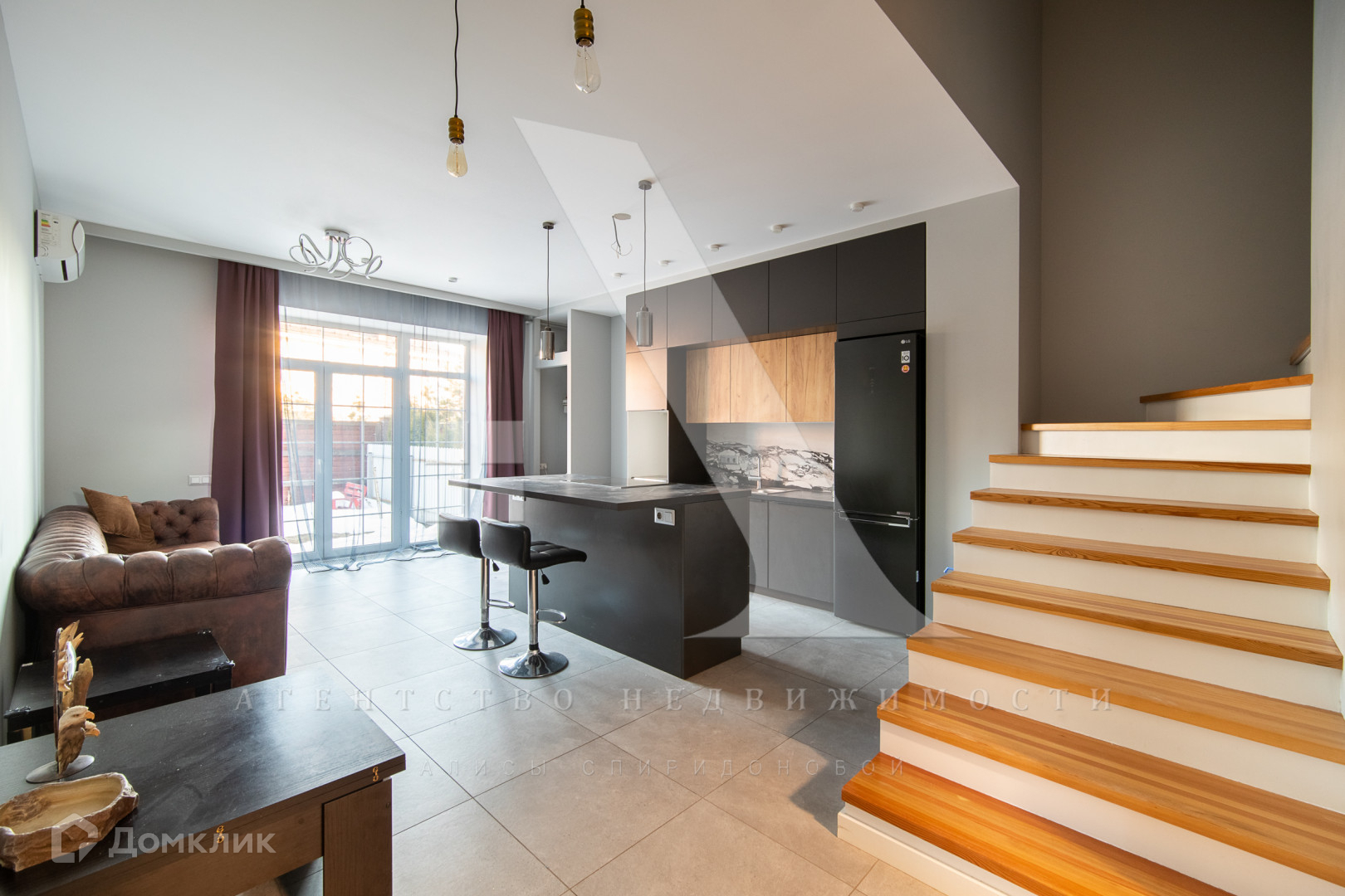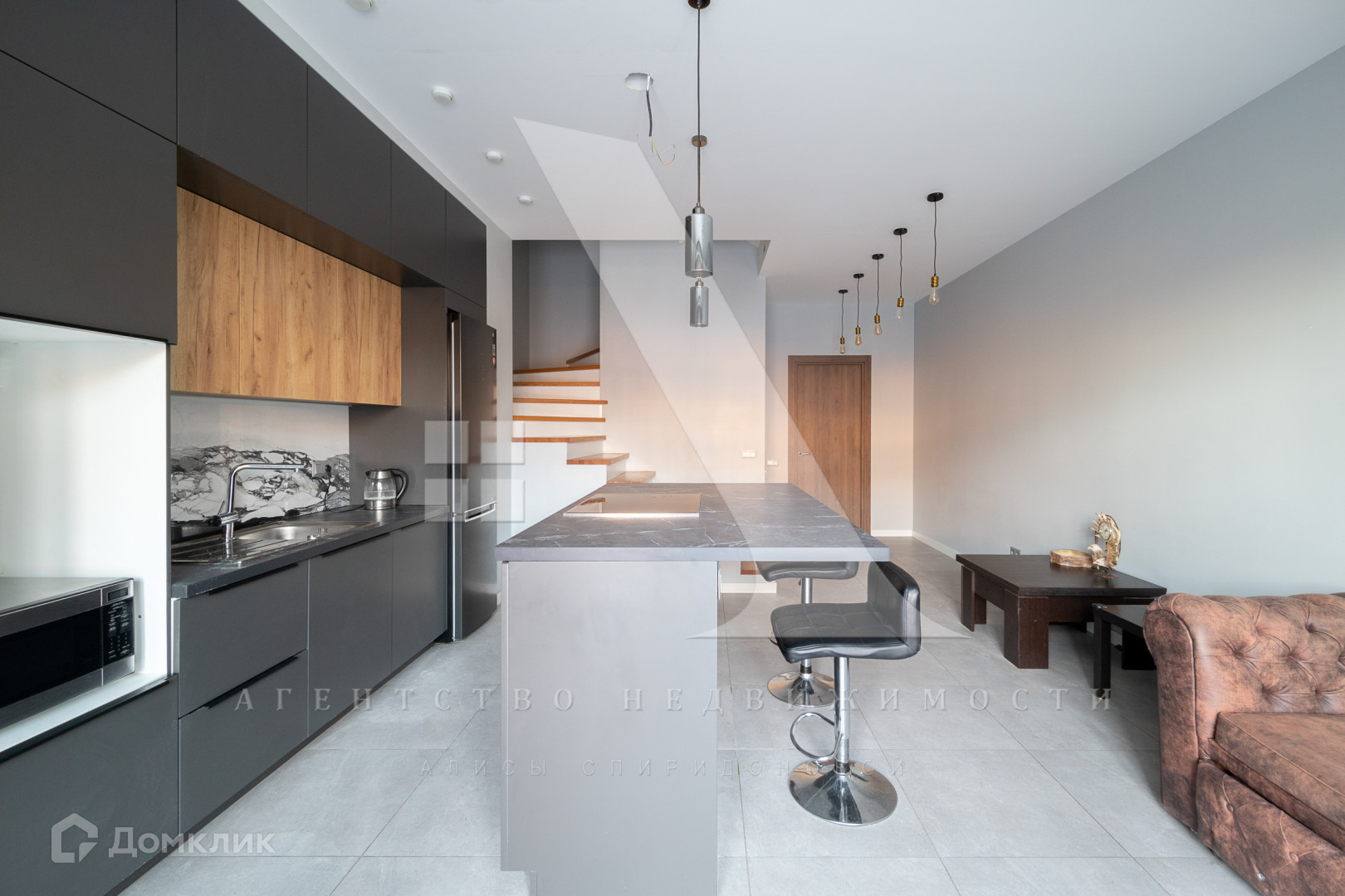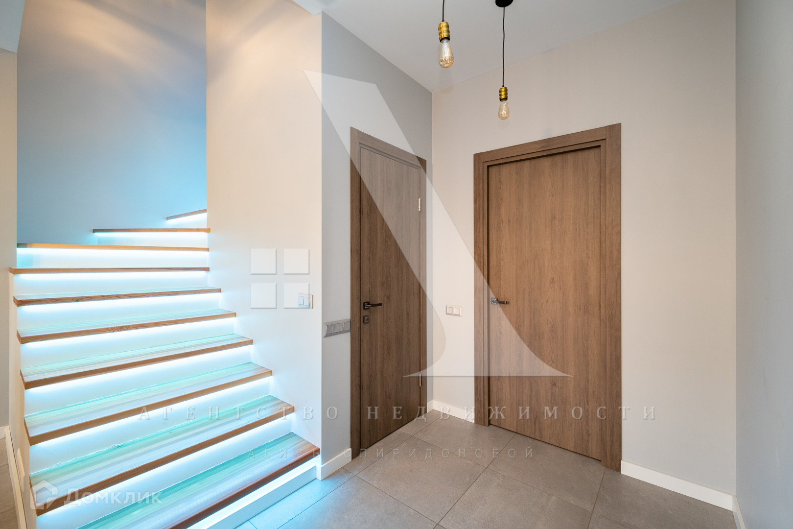 Ремонт в современном стиле выполнен  по дизайн-проекту с использованием высококачественных дорогих материалов. Подогреваемый пол, неоновая подсветка лестницы.