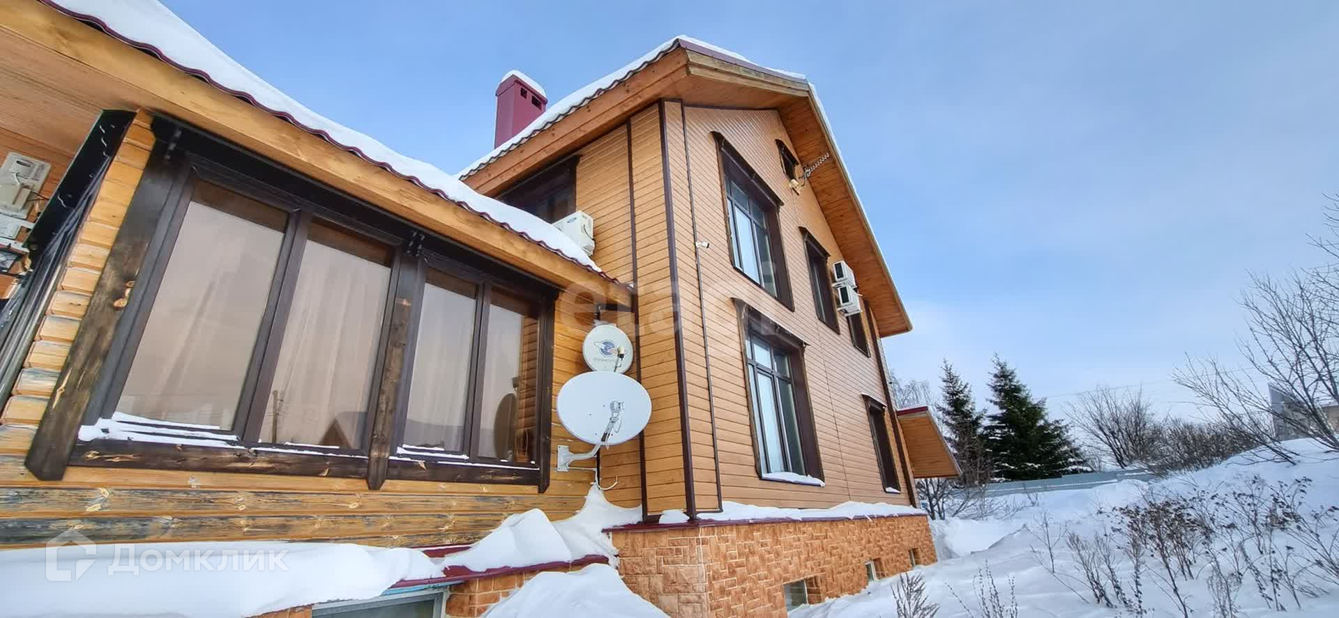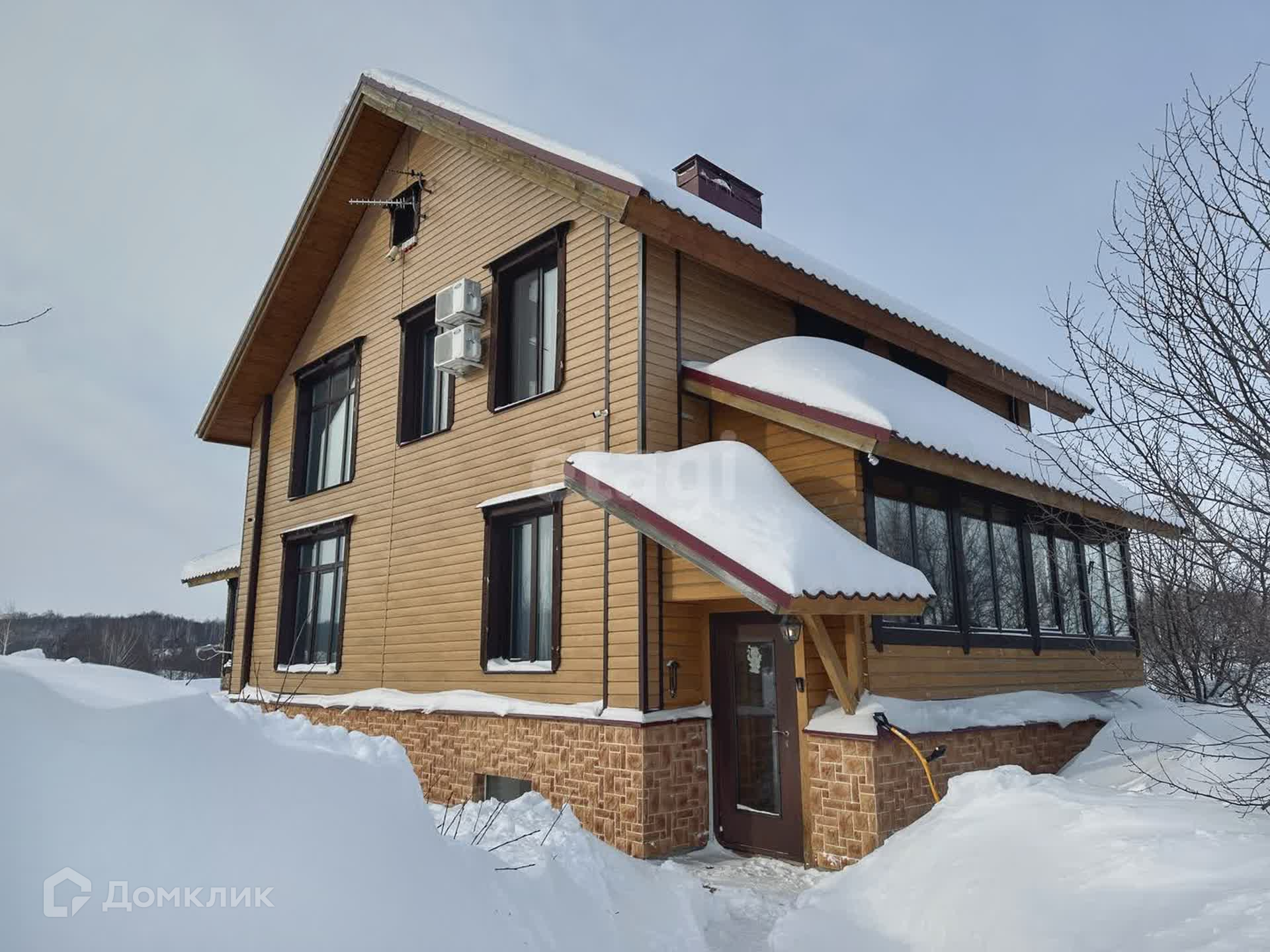 Дом 3 этажа (высокий цоколь)снаружи обшит металло-сайдингом