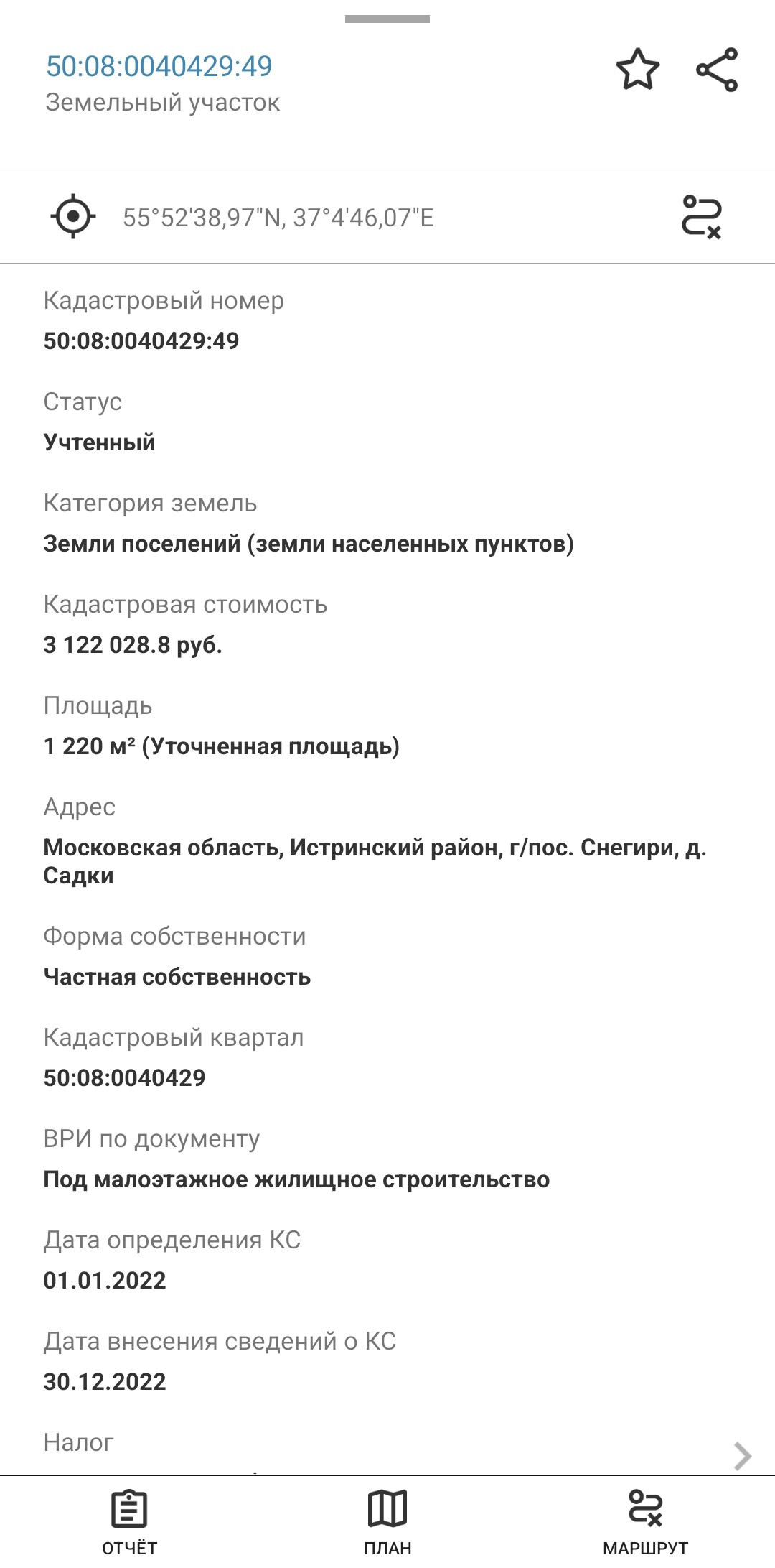 Стоимость недвижимости: