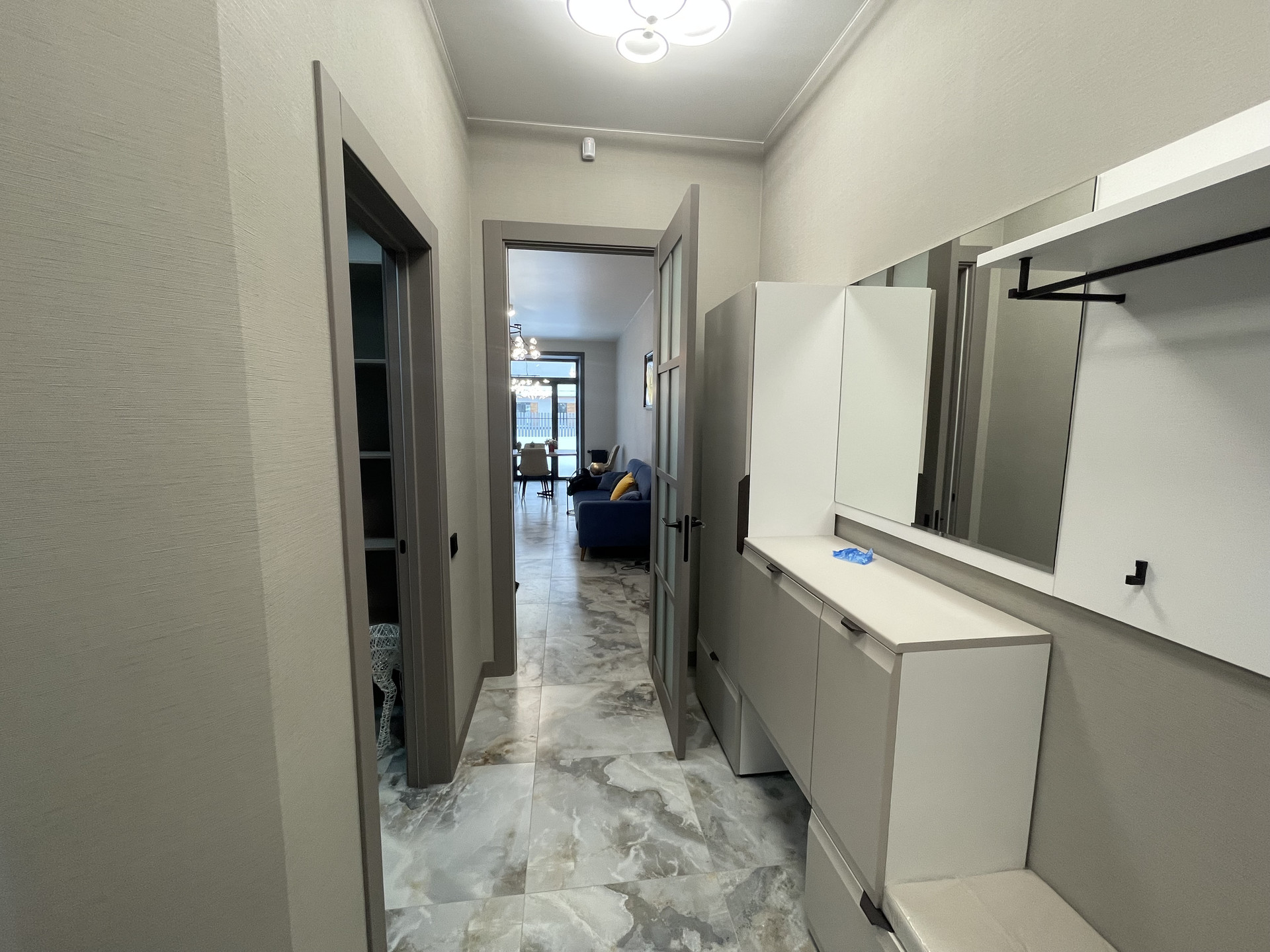 В доме выполнена отделка white box.