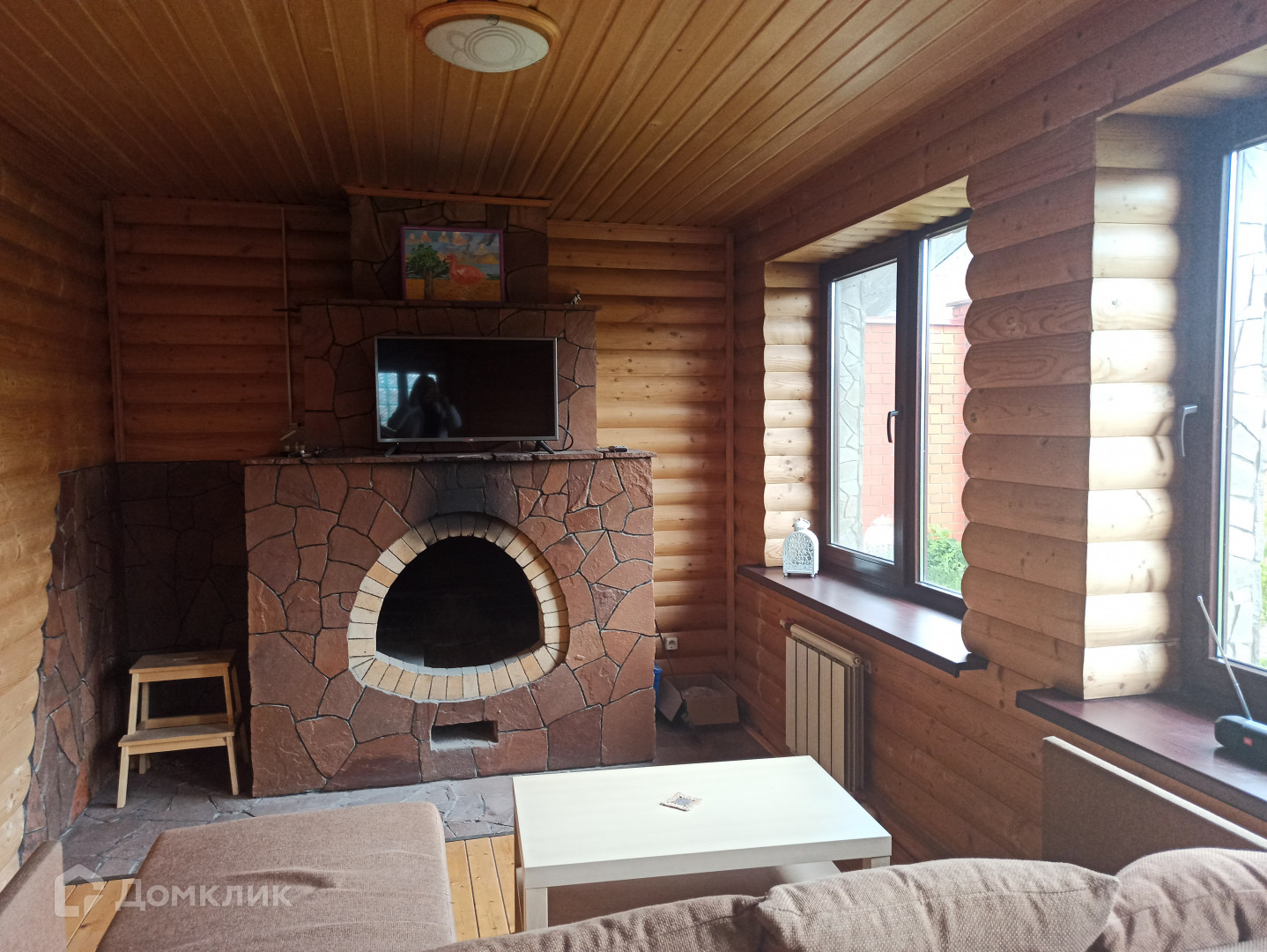 Баня: кухня, гостиная, камин, санузел, душевая, купель, баня, на втором этаже одна большая комната.