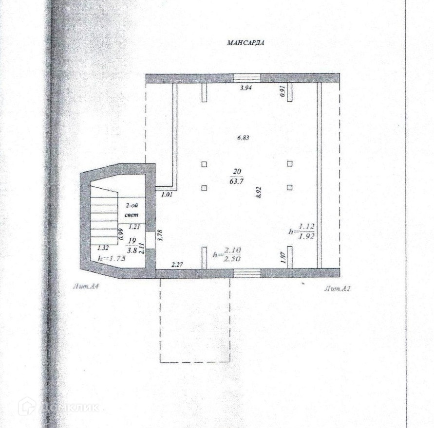 Третий этаж мансардный: одна большая комната.