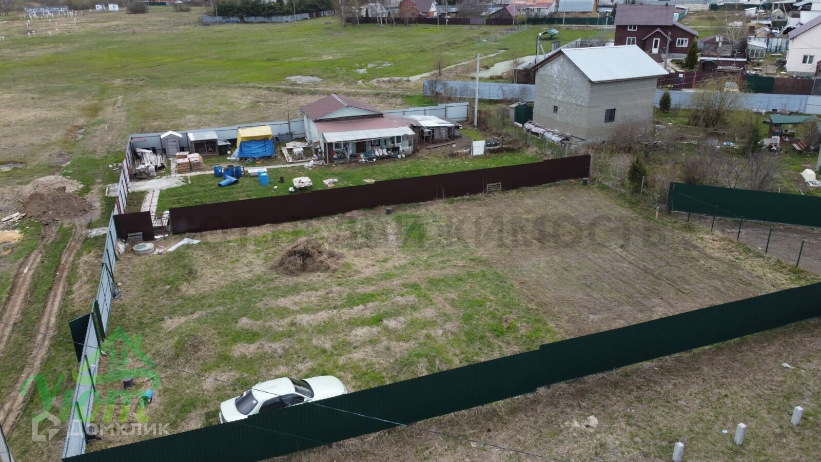 профлистом, с откатными воротами, заведено15квт электричество, вода 4 кольца,