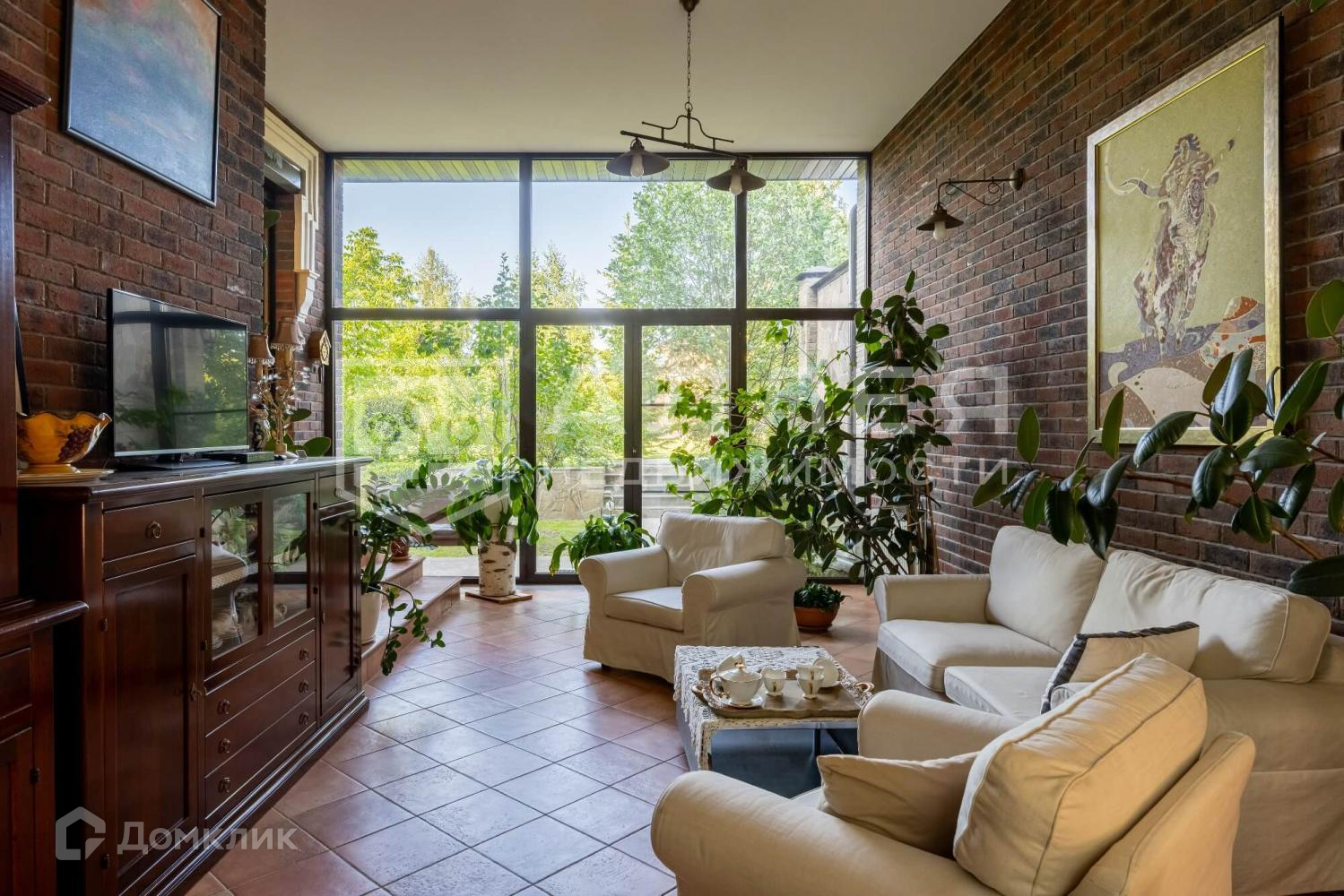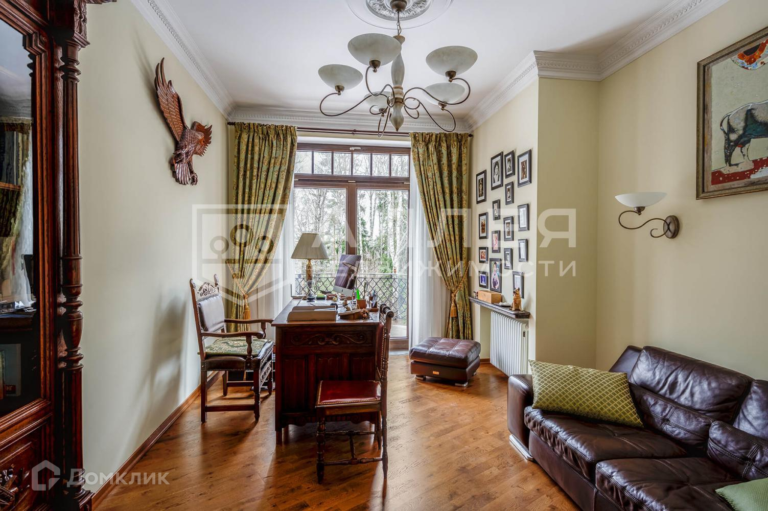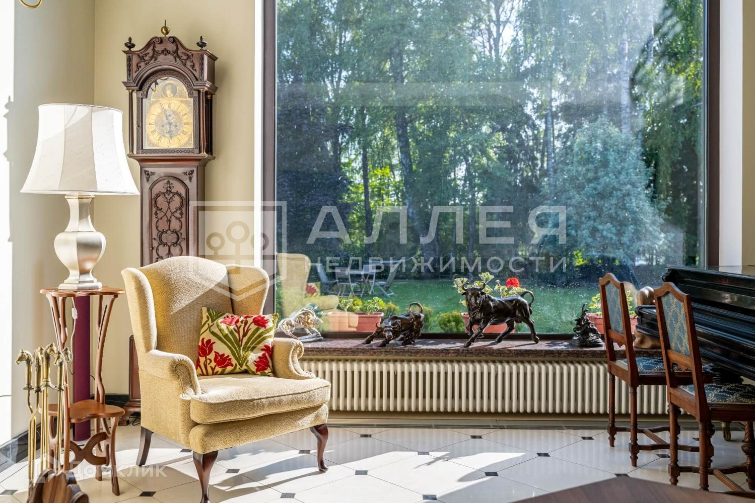 Дом: Дом с панорамным остеклением, вторым светом и живописным видом на лесной участок. В доме высокие потолки 3.5 метра. Интерьер выполнен с элементами антикварного декора. Изюминкой дома является закрытая веранда с камином и зимним садом.