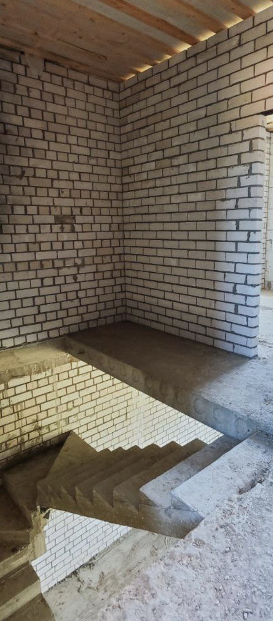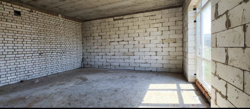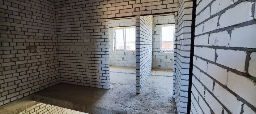 Черновая отделка, первый этаж кухня гостинная и сан узел, второй этаж три комнаты, участок 2 сотки