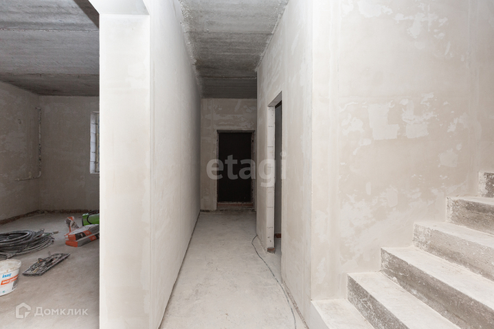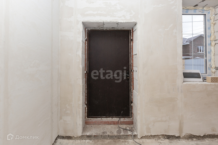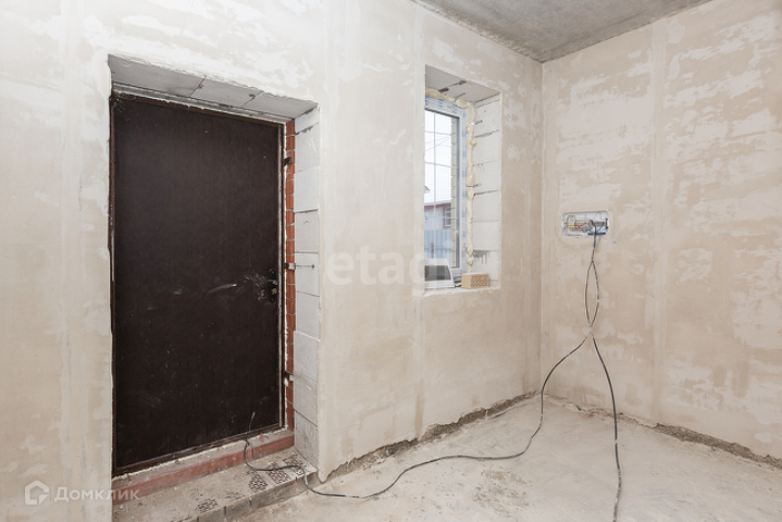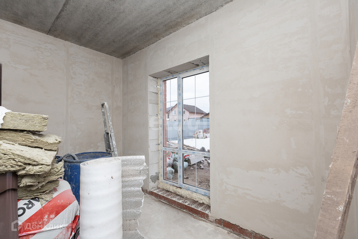 Стены газобетонные блоки, облицовка кирпич, плиты перекрытия. Крыша металлочерепица. Бетонная лестница. Пластиковые окна. Дом сдается в предчистовой отделке. На первом этаже большая прихожая, просторная кухня-гостиная, санузел и комната.