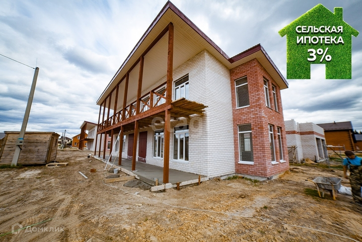 Дом на две квартиры. Каждая секция в два этажа общей площадью порядка ста сорока метров квадратных.