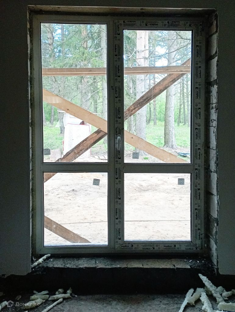 Утепленные крыша и потолок на втором этаже (черновой), штукатурка и шпаклевка стен, стеклопакеты, временная входная дверь