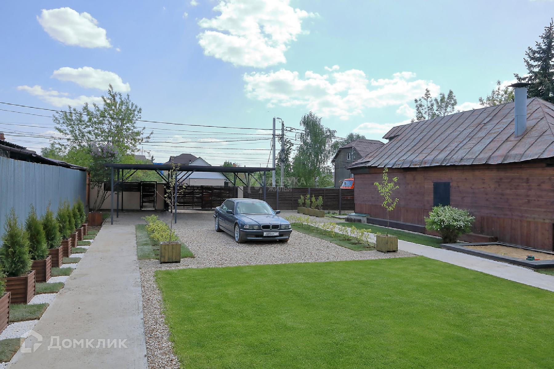 Ухоженный зонированный участок с дорожками и туями. Есть патио с мангальной зоной.