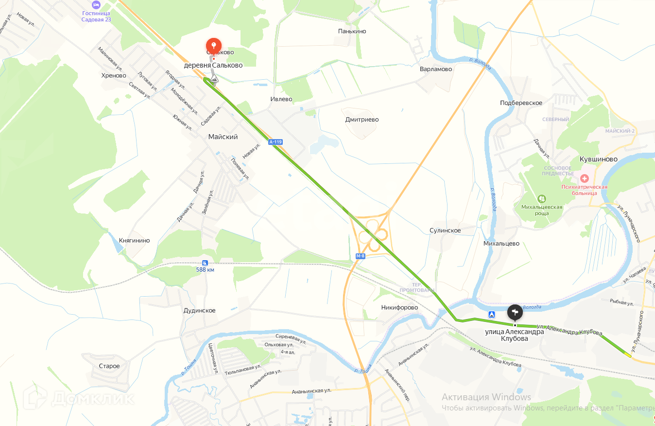 Расстояние от Вологды всего 11 километров, до Майского 1 км.