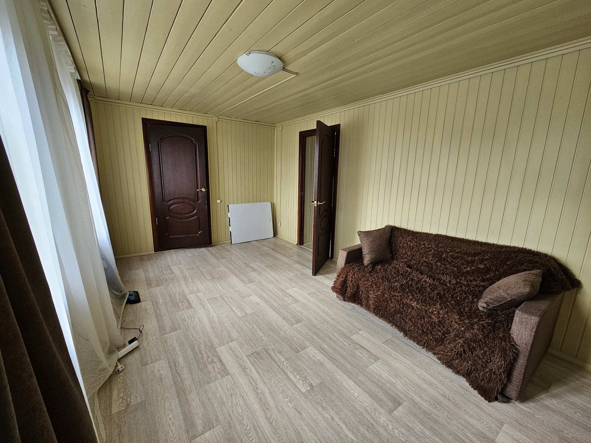 В доме 5 комнат: 2 комнаты на 2м этаже, одна из них с большим балконом, на 1м этаже - кухня, большая гостиная с выходом на огромную летнюю террасу и 2 комнаты. Дом отремонтирован с тёплой уютной атмосферой.  Мебель можно оставить по договорённости.